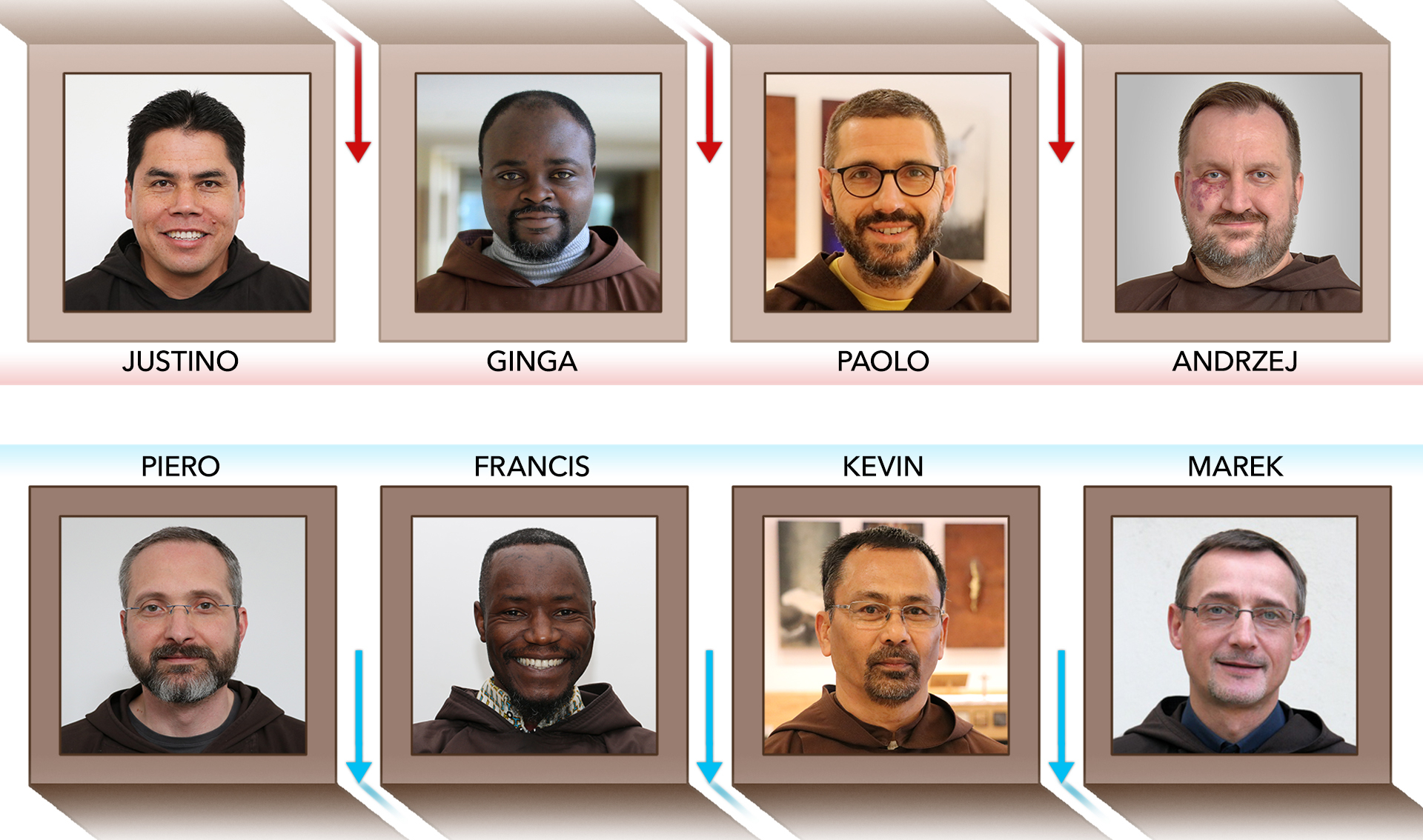 Ai fratelli Piero, Francis, Kevin e Marek giunga l’espressione della nostra gratitudine per il loro instancabile servizio all’Ordine e per la loro bella e stimolante presenza fraterna, e ai fratelli Justino, e Tomás, il nostro cordiale benvenuto nella fraternità della Curia Generalizia, e a Paolo e Andrzej il benvenuto nelle loro nuove sedi con l’augurio di un fruttuoso servizio all’Ordine. Il Signore ricompensi tutti con ogni benedizione!