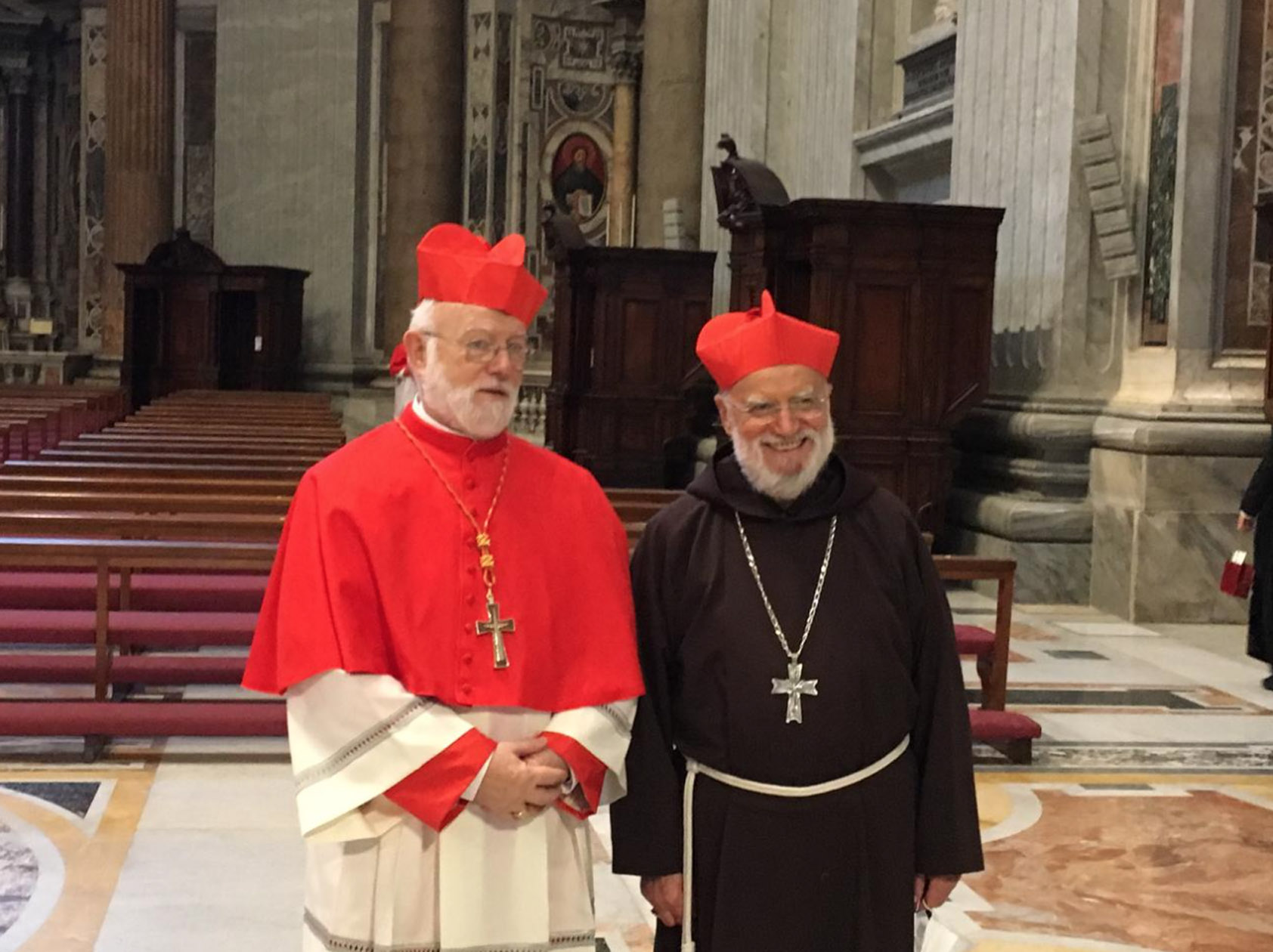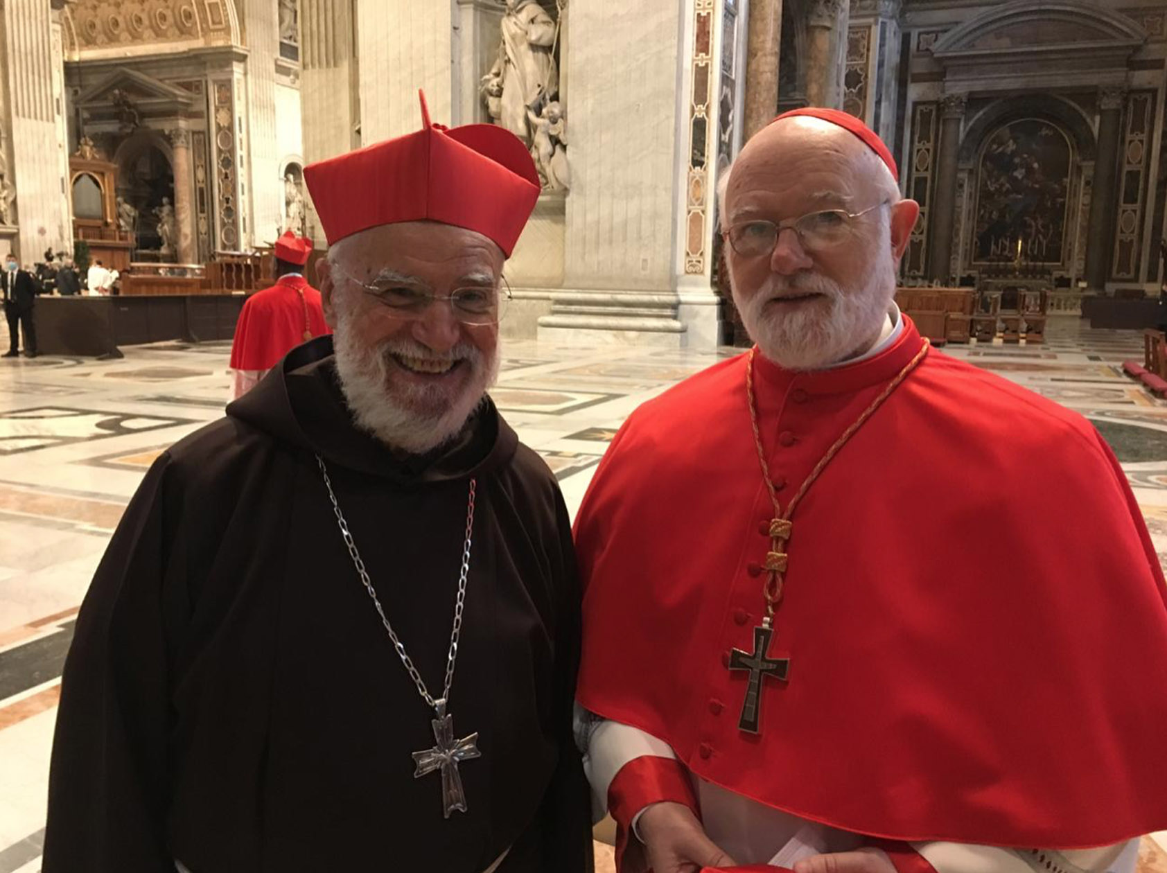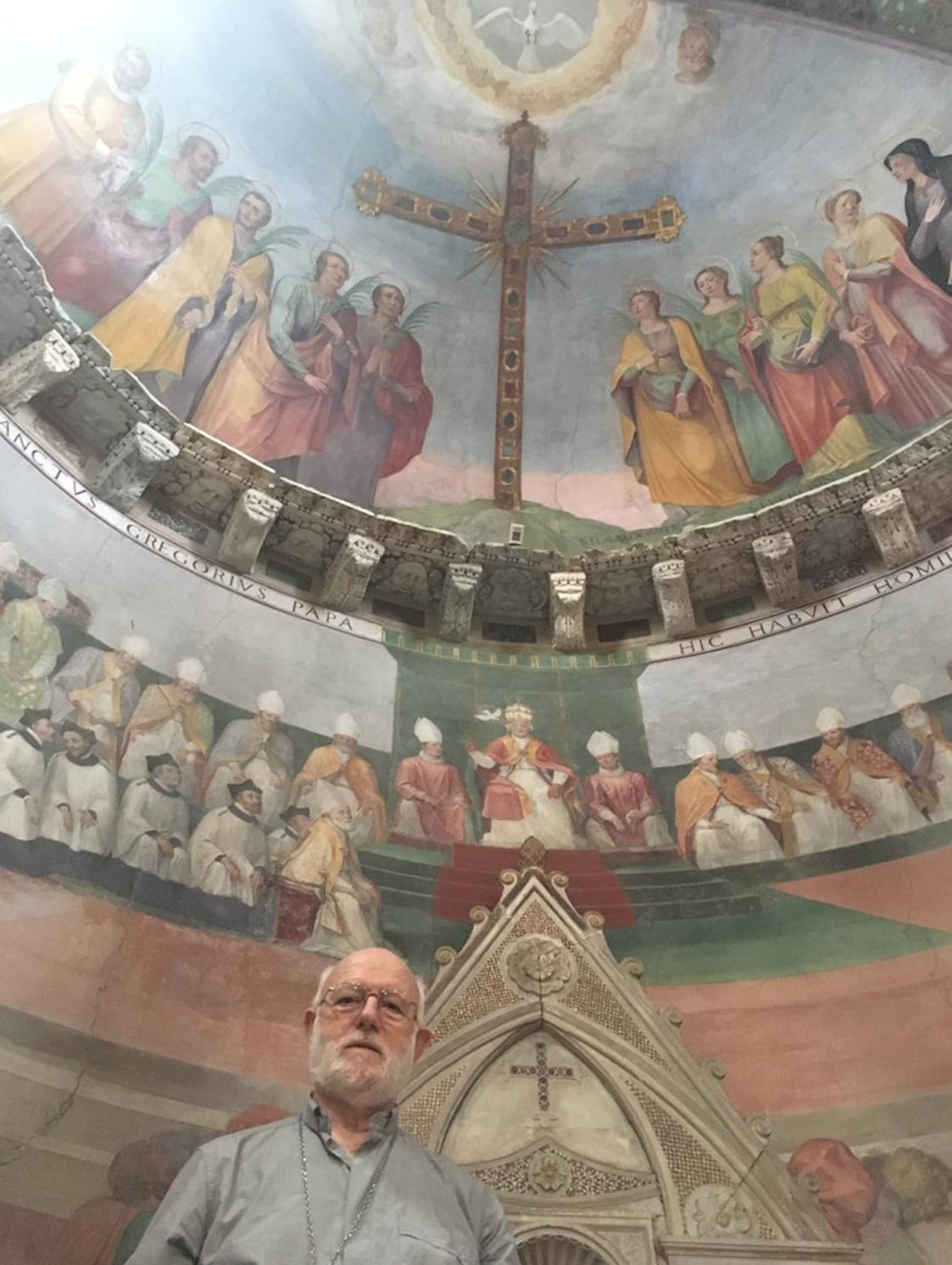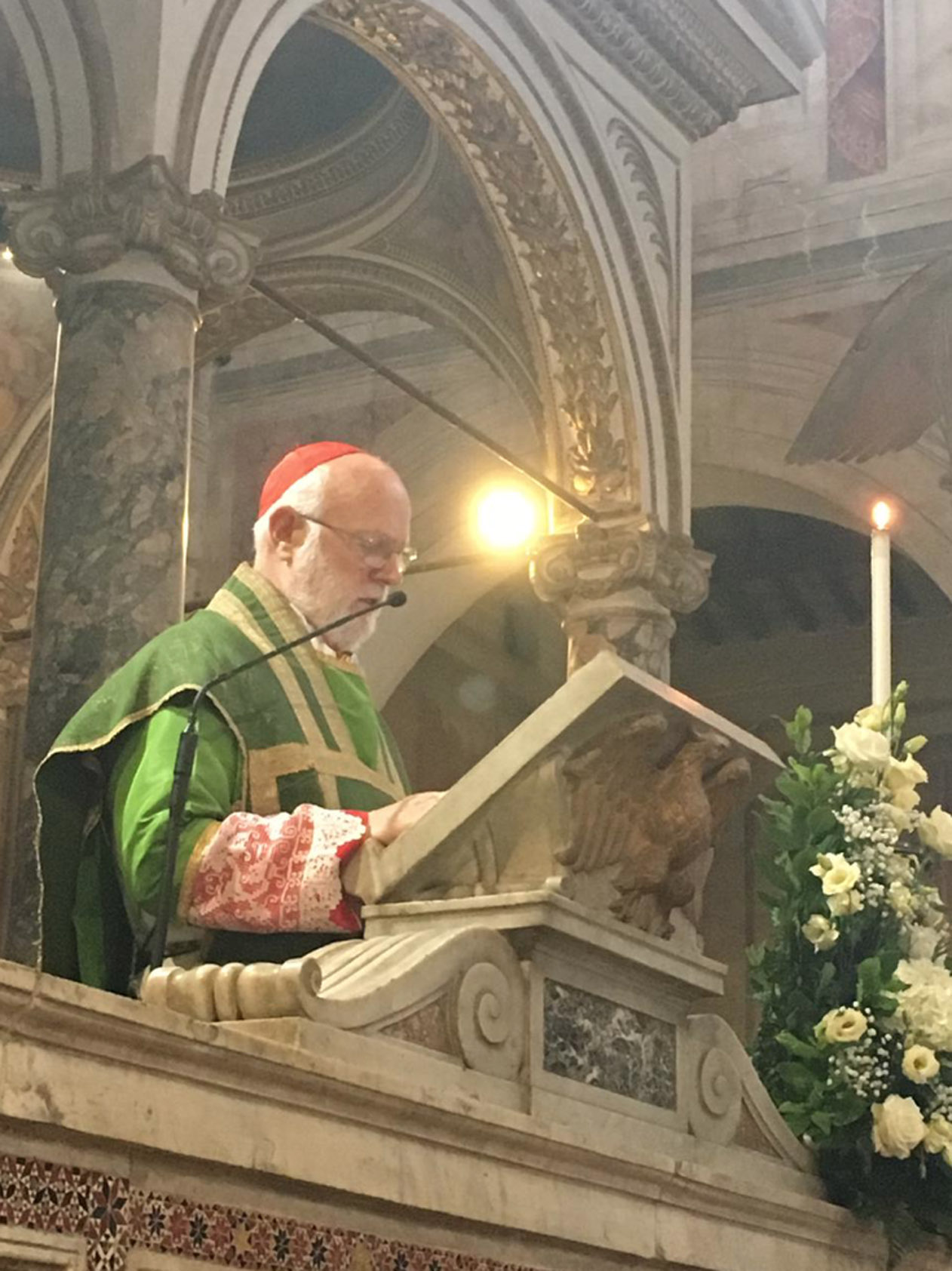 Entre as paredes amplamente afrescadas com as cenas cruéis de muitos martírios, ressoou o convite evangélico a não se ter medo, também quando as tempestades agitam a barca em que estamos. Não se deixar abandonar ao medo, mas “amar e servir”, como indica o lema escolhido pelo Cardeal para o seu brasão, agora posto na fachada da Igreja.