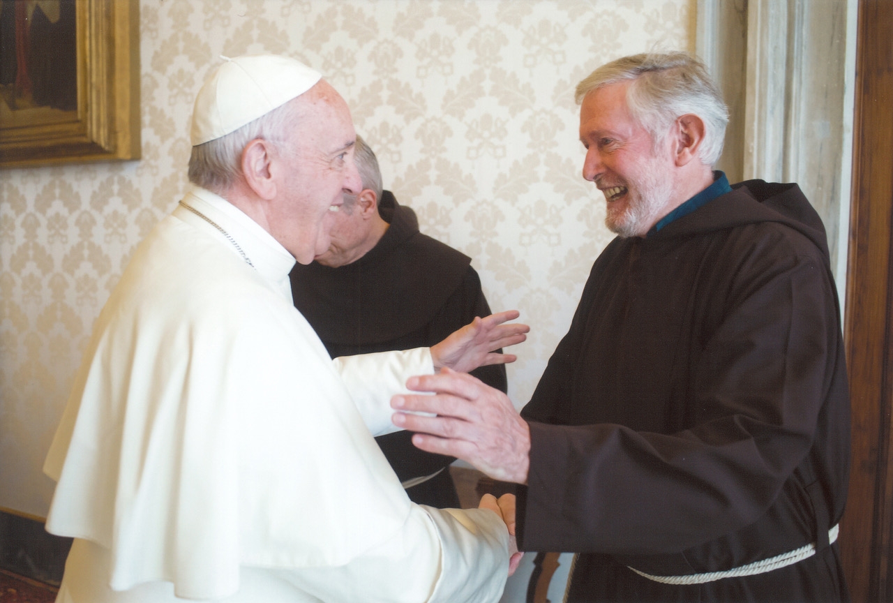 Fiquei muito contente por tê-lo recentemente encontrado, juntamente com os irmãos das Famílias Franciscanas. Sou-lhe muito grato pelas felicitações de Natal, acompanhadas pelo dom de caridade, o qual destinei imediatamente aos irmãos marcados pela dor e pela marginalização. O Natal suscita em nós a urgência de extinguir a sede de amor de Jesus mediante o serviço aos mais pobres entre os pobres, como nos ensina São Francisco quando contemplava o mistério do Amor não amado.