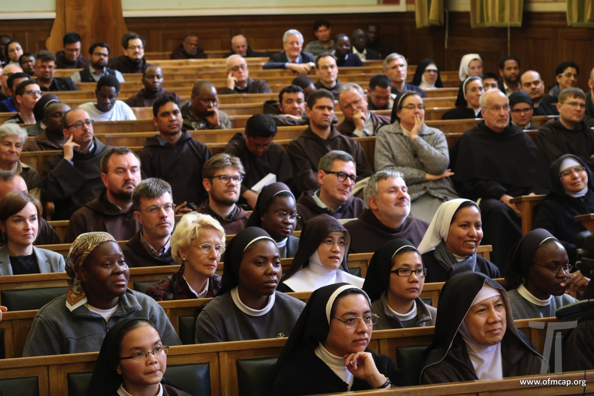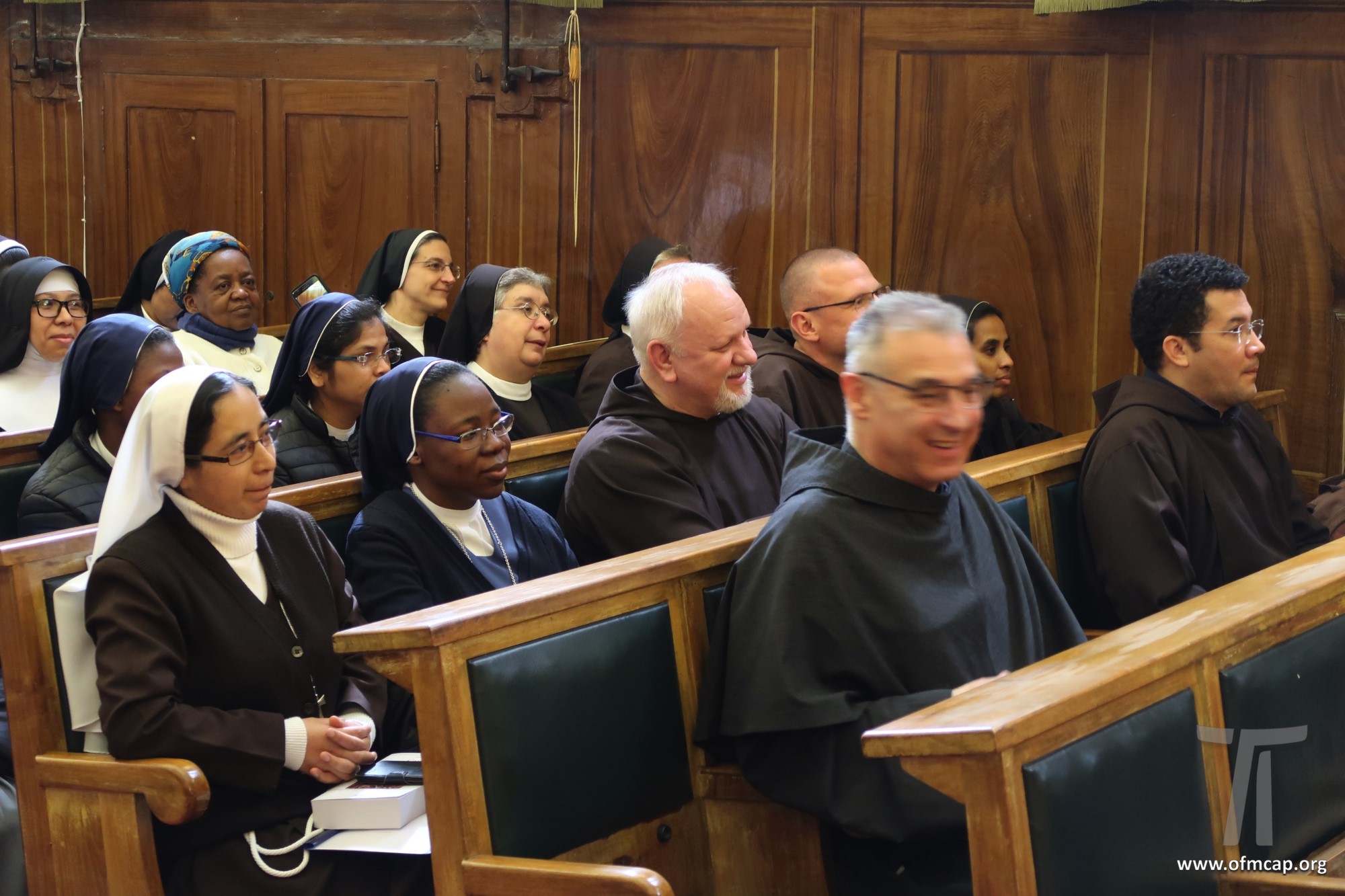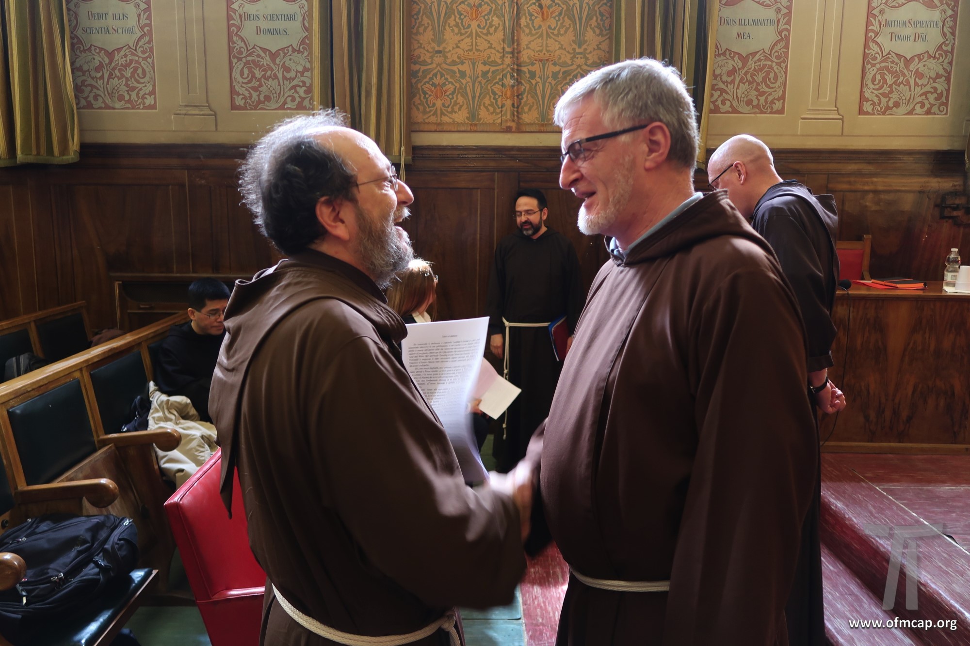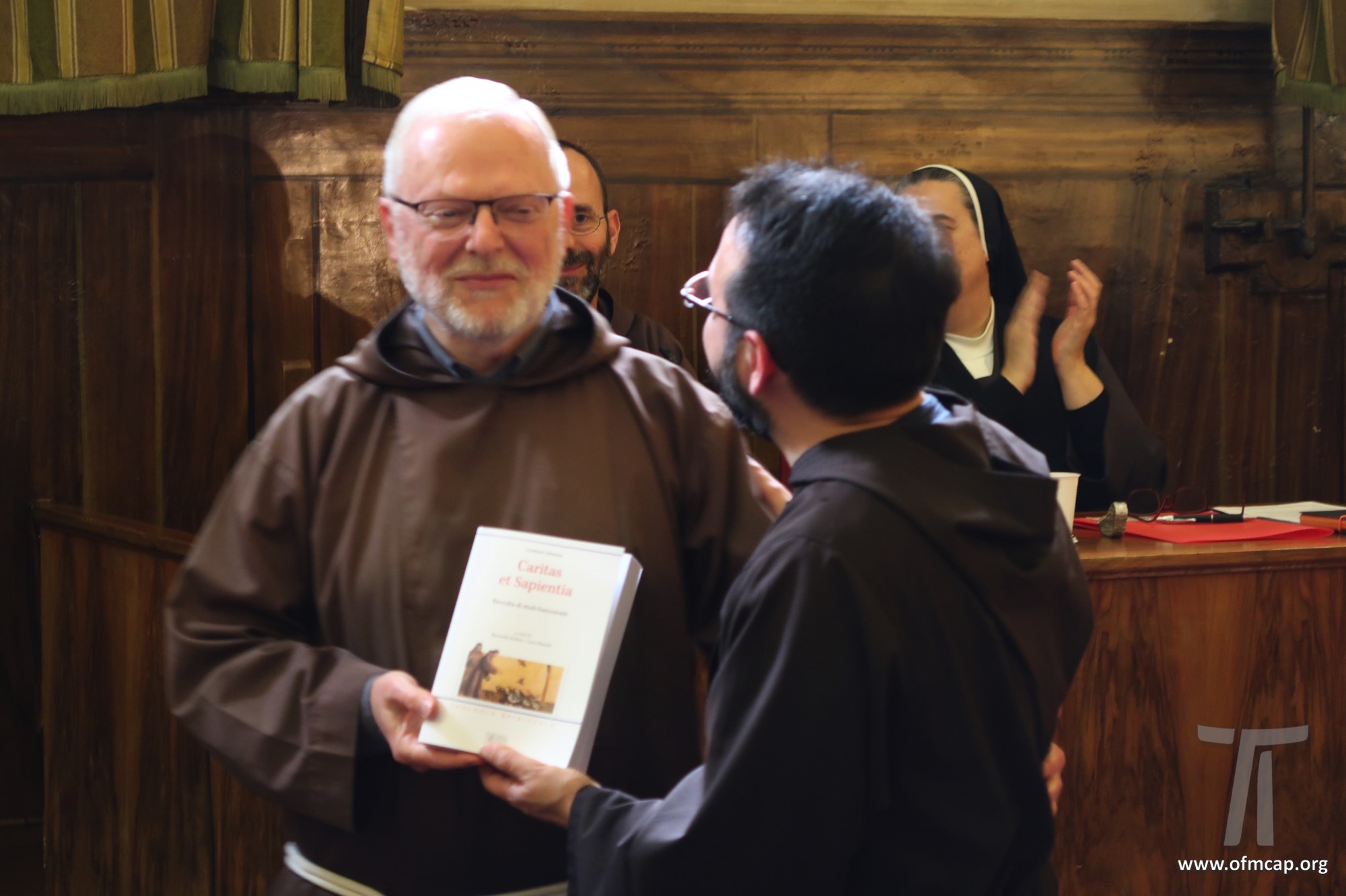 En la celebración participaron números hermanos y estudiantes de las familias franciscanas, tanto de los institutos masculinos como femeninos. En la apertura el Ministro General de la Orden de los Capuchinos, Roberto Genuin, dirigió el saludo al Prof. Leonhard Lehmann y a todos los participantes. Luego fueron presentadas dos conferencias sobre la carrera académica del Prof. Lehmann (Hna. Mary Melone, Rectora Magnífica de la PUA) y su perfil personal como hermano y docente (Mons. Paolo Martinelli, OFM Cap., Obispo auxiliar de Milán). El IFS preparó un volumen para celebrar los setenta años y el nombramiento de profesor emérito de Lehmann, como pequeño signo de agradecimiento por todo lo que ha hecho con competencia y contante empeño, para el desarrollo y la cualificación de nuestro Instituto y de nuestra Universidad (Leonhard Lehmann, Caritas et Sapientia. Raccolta di studi francescani, dir. B. Molina – L. Bianchi, Dehoniane, Bologna 2019 (Bernardo Molina OFM Cap., Profesor IFS). Como signo de estima y gratitud de algunos estudiantes del Prof. Lehmann recogieron su experiencia, entre otros: la Dra. Karin Maier de Ausstria, fr. Ricardo Rodrigues y fr. Azam Masih en representación de aquellos que hicieron la tesis de licenciatura y Sor Angele de aquellos que hicieron la tesis de Diploma. El Vicario Provincial de la Provincia de Alemania, fr. Chistoforus Gödereis, cerró este momento con un sentido y fraterno saludo.