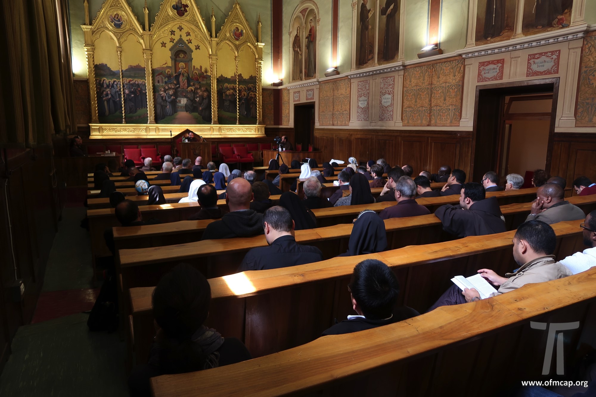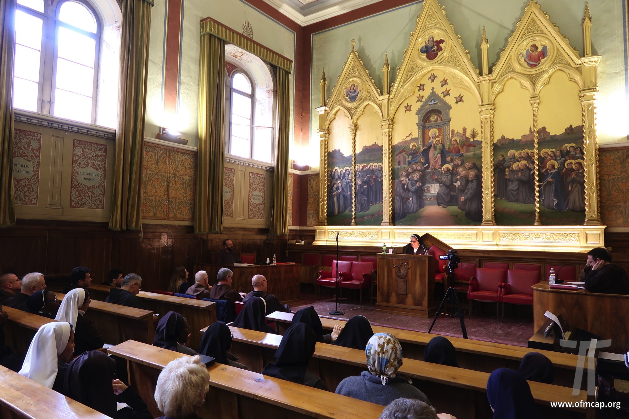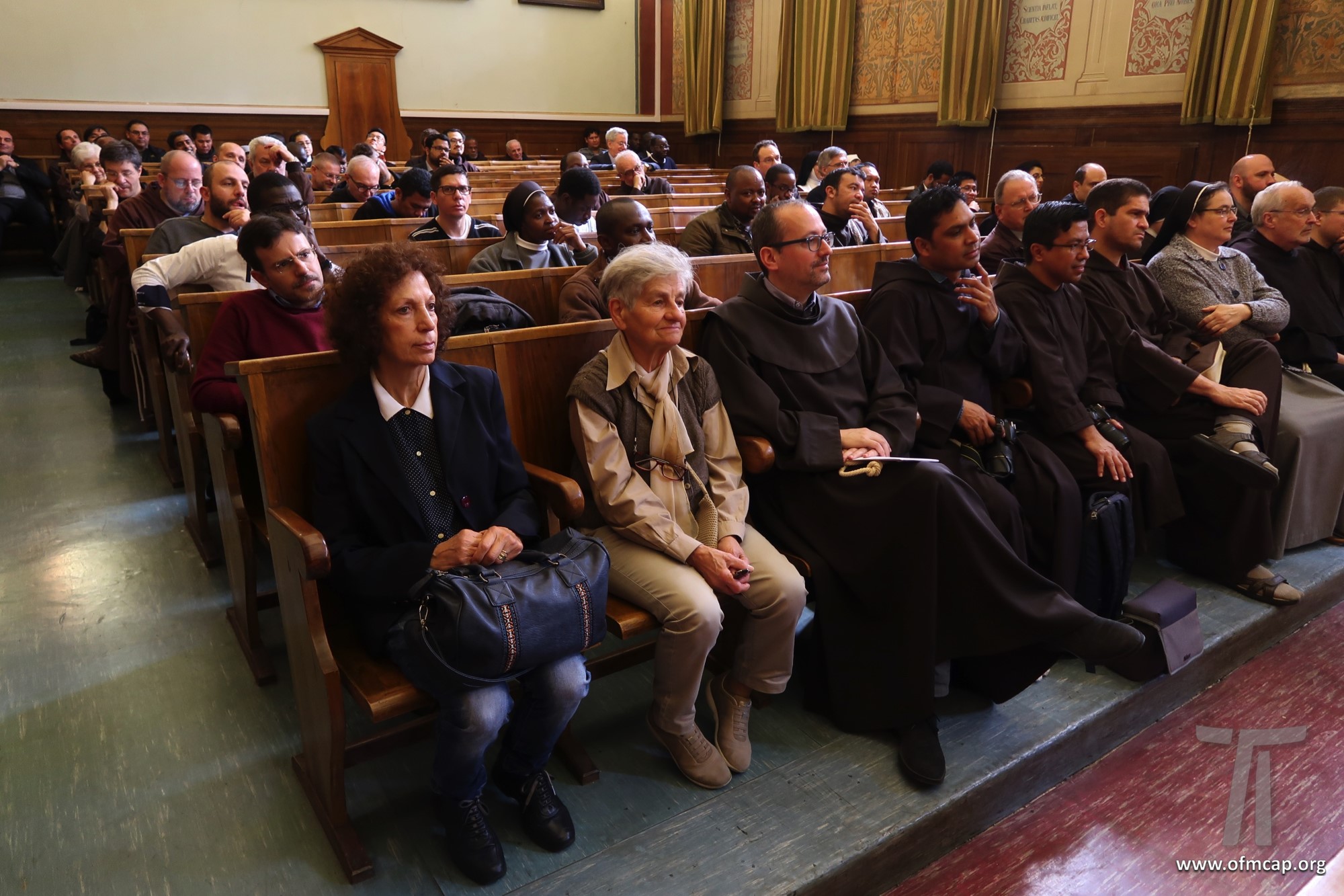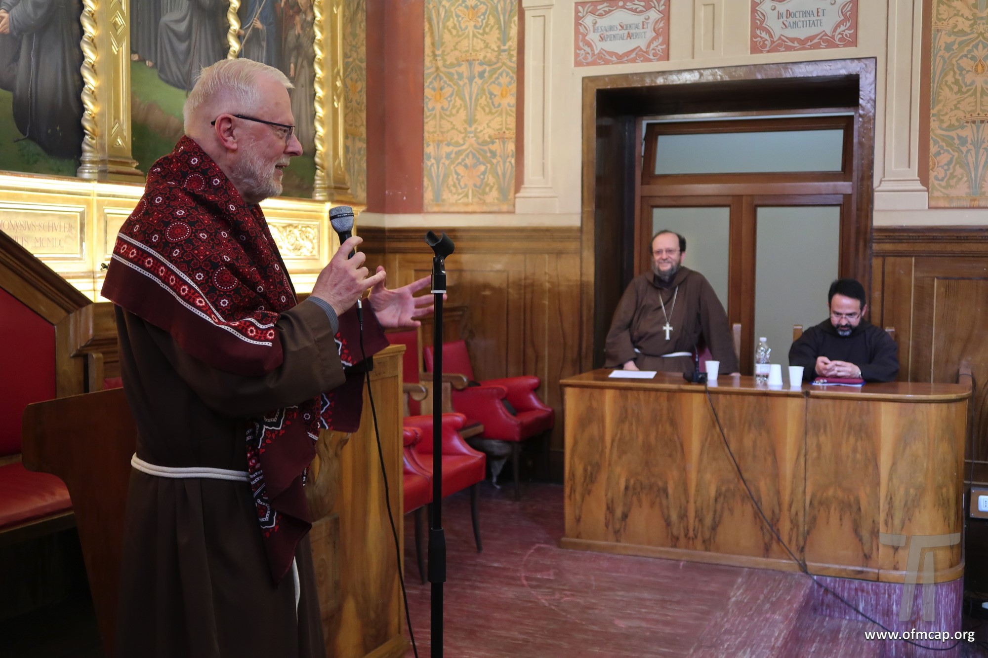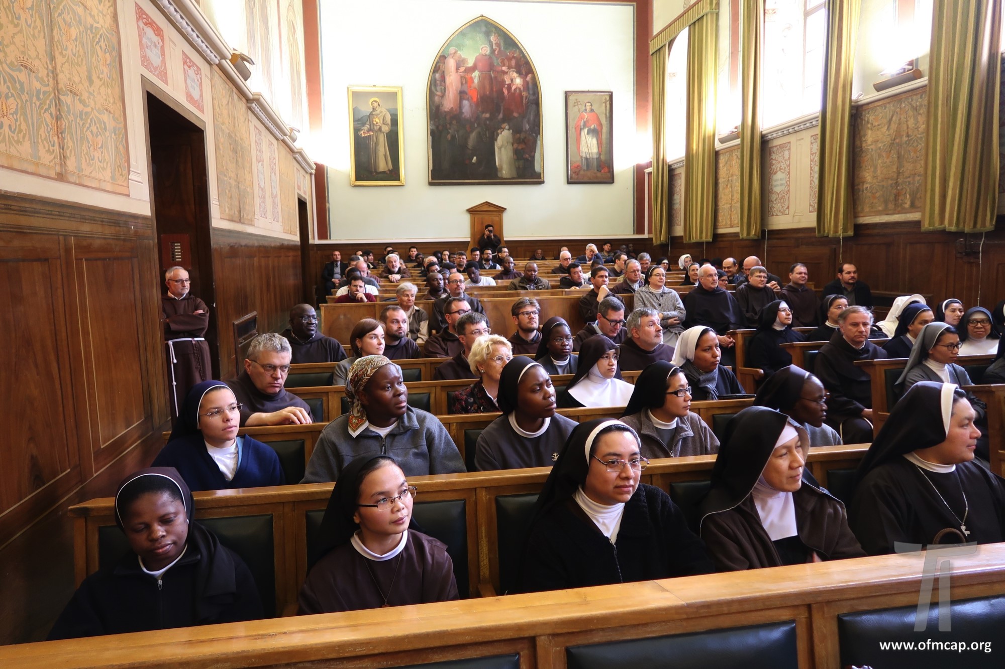 En la celebración participaron números hermanos y estudiantes de las familias franciscanas, tanto de los institutos masculinos como femeninos. En la apertura el Ministro General de la Orden de los Capuchinos, Roberto Genuin, dirigió el saludo al Prof. Leonhard Lehmann y a todos los participantes. Luego fueron presentadas dos conferencias sobre la carrera académica del Prof. Lehmann (Hna. Mary Melone, Rectora Magnífica de la PUA) y su perfil personal como hermano y docente (Mons. Paolo Martinelli, OFM Cap., Obispo auxiliar de Milán). El IFS preparó un volumen para celebrar los setenta años y el nombramiento de profesor emérito de Lehmann, como pequeño signo de agradecimiento por todo lo que ha hecho con competencia y contante empeño, para el desarrollo y la cualificación de nuestro Instituto y de nuestra Universidad (Leonhard Lehmann, Caritas et Sapientia. Raccolta di studi francescani, dir. B. Molina – L. Bianchi, Dehoniane, Bologna 2019 (Bernardo Molina OFM Cap., Profesor IFS). Como signo de estima y gratitud de algunos estudiantes del Prof. Lehmann recogieron su experiencia, entre otros: la Dra. Karin Maier de Ausstria, fr. Ricardo Rodrigues y fr. Azam Masih en representación de aquellos que hicieron la tesis de licenciatura y Sor Angele de aquellos que hicieron la tesis de Diploma. El Vicario Provincial de la Provincia de Alemania, fr. Chistoforus Gödereis, cerró este momento con un sentido y fraterno saludo.