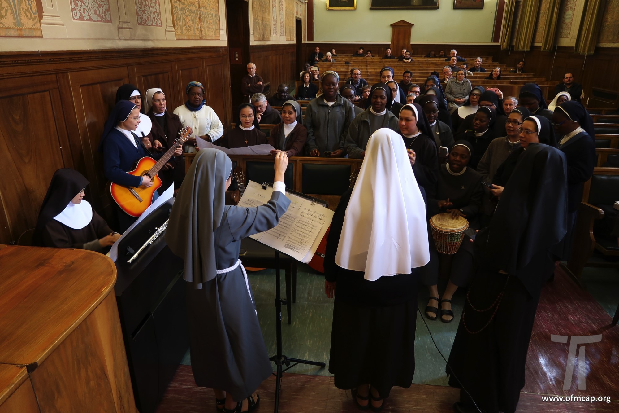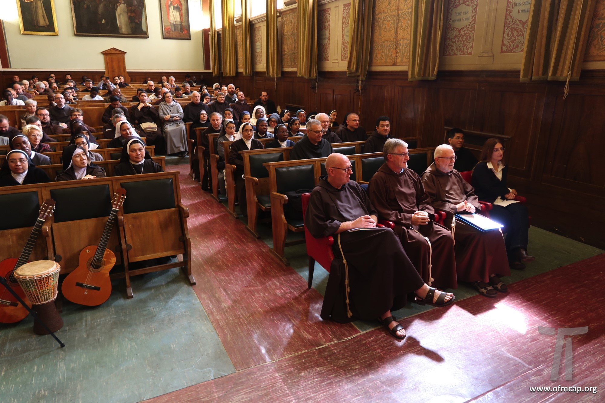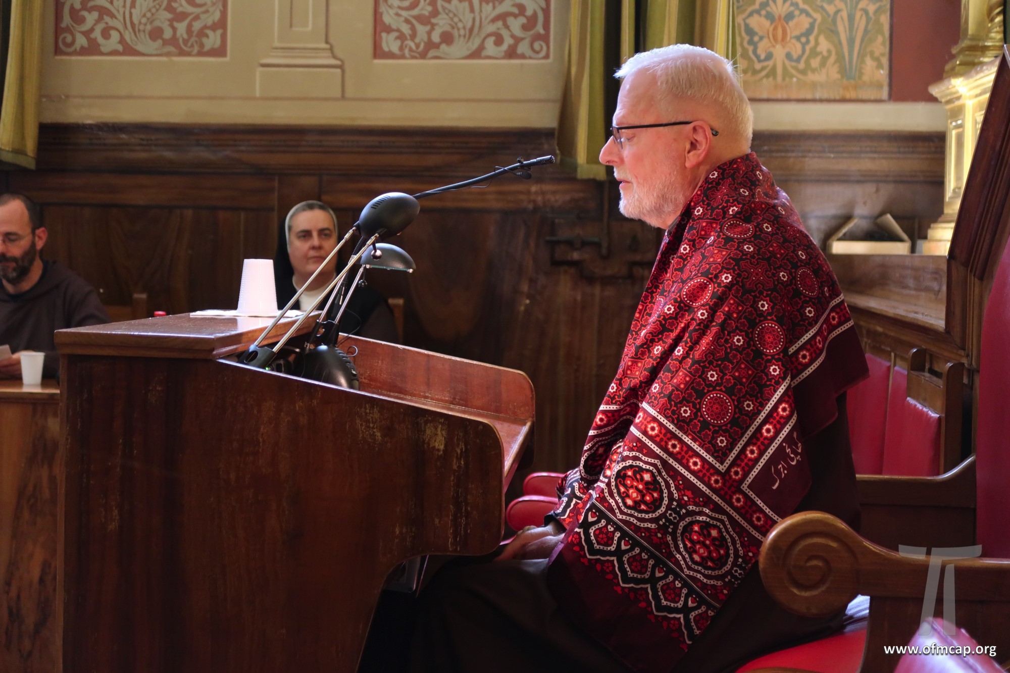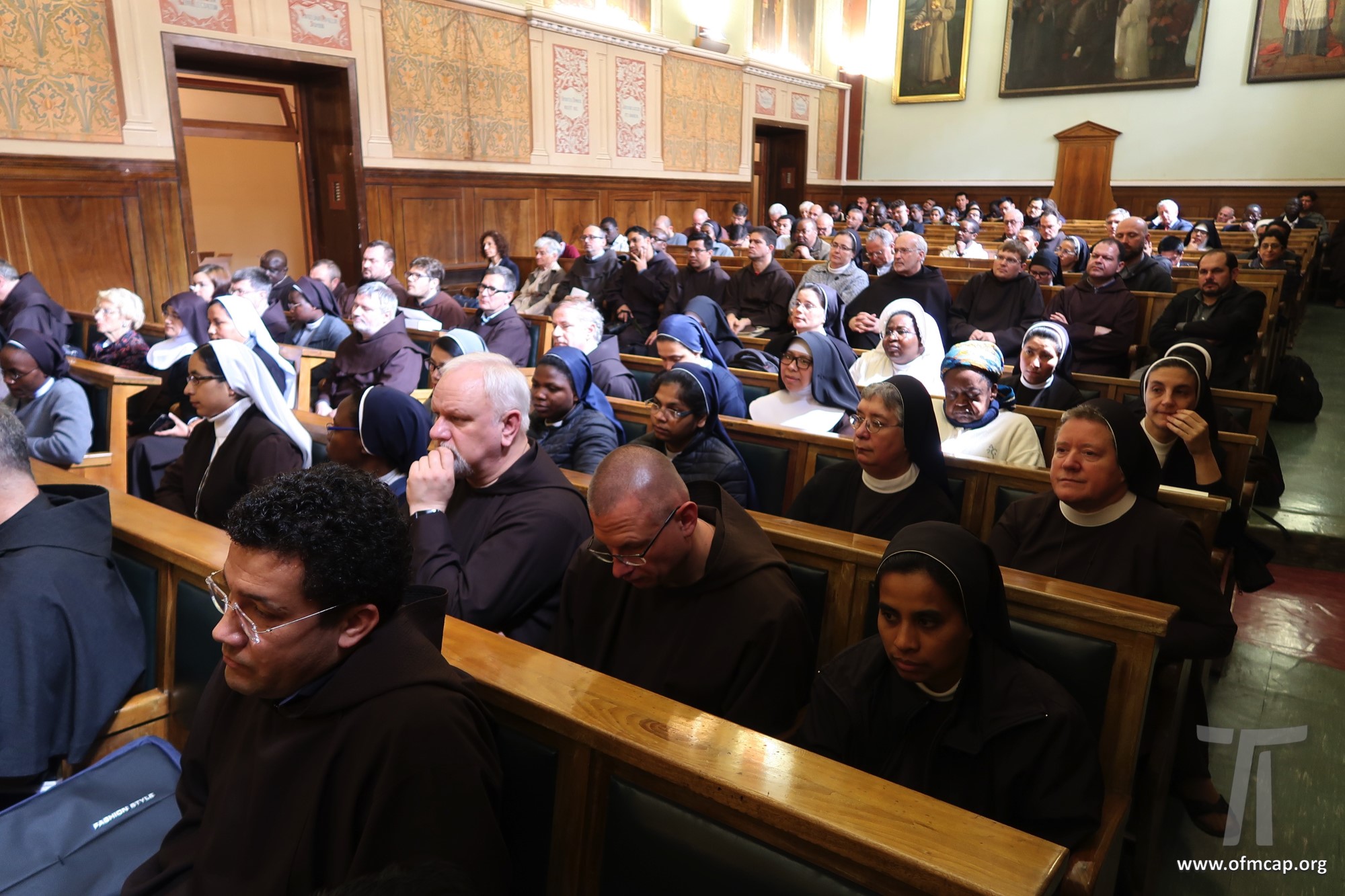 En la celebración participaron números hermanos y estudiantes de las familias franciscanas, tanto de los institutos masculinos como femeninos. En la apertura el Ministro General de la Orden de los Capuchinos, Roberto Genuin, dirigió el saludo al Prof. Leonhard Lehmann y a todos los participantes. Luego fueron presentadas dos conferencias sobre la carrera académica del Prof. Lehmann (Hna. Mary Melone, Rectora Magnífica de la PUA) y su perfil personal como hermano y docente (Mons. Paolo Martinelli, OFM Cap., Obispo auxiliar de Milán). El IFS preparó un volumen para celebrar los setenta años y el nombramiento de profesor emérito de Lehmann, como pequeño signo de agradecimiento por todo lo que ha hecho con competencia y contante empeño, para el desarrollo y la cualificación de nuestro Instituto y de nuestra Universidad (Leonhard Lehmann, Caritas et Sapientia. Raccolta di studi francescani, dir. B. Molina – L. Bianchi, Dehoniane, Bologna 2019 (Bernardo Molina OFM Cap., Profesor IFS). Como signo de estima y gratitud de algunos estudiantes del Prof. Lehmann recogieron su experiencia, entre otros: la Dra. Karin Maier de Ausstria, fr. Ricardo Rodrigues y fr. Azam Masih en representación de aquellos que hicieron la tesis de licenciatura y Sor Angele de aquellos que hicieron la tesis de Diploma. El Vicario Provincial de la Provincia de Alemania, fr. Chistoforus Gödereis, cerró este momento con un sentido y fraterno saludo.