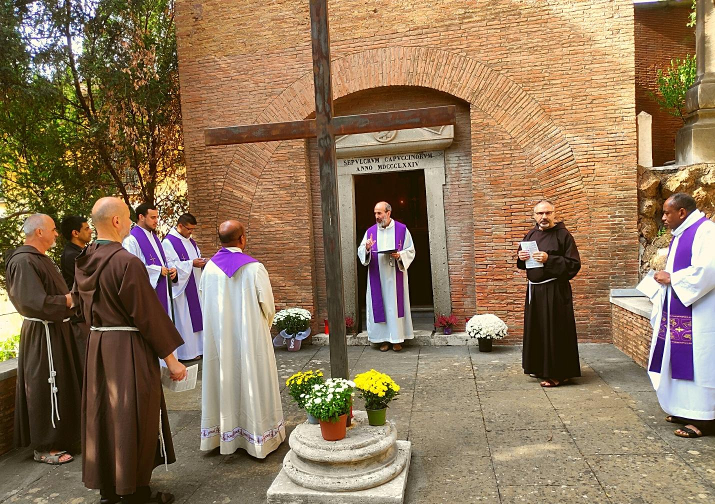 Avec gratitude, affection et prières, quelques frères de la Curie générale se sont rendus au cimetière de San Lorenzo al Verano ce 2 novembre pour célébrer la messe près de la tombe de la Curie générale. Le frère gardien Michele Mottura a célébré la messe et les frères ont prié ensemble pour les âmes défuntes. Dans sa vibrante homélie, frère Michele a partagé les réflexions suivantes :