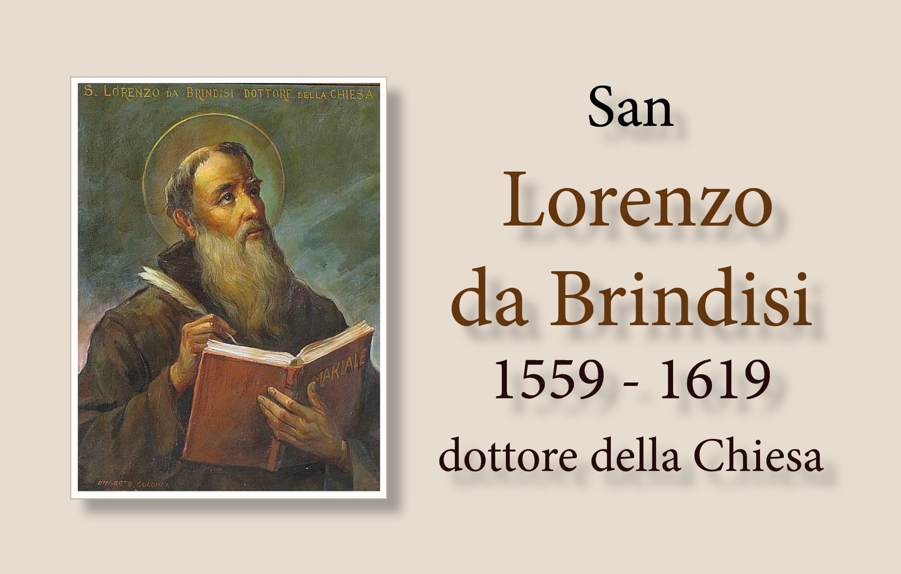 Para destacar a ocorrência do IV centenário da morte de São Lourenço de Bríndisi, frade capuchinho, ocorrida em Lisboa, e para honrar a memória deste seu grande filho e marcar a vastidão dos interesses de sua vida e do seu compromisso como religioso, sacerdote, estudioso, apóstolo e diplomata na Europa do final do século XVI e início do XVII, indicamos o Congresso de estudos que acontecerá de 17 a 19 de outubro de 2019 no Instituto Teológico “Laurentianum”, em Veneza. Intervirão conferencistas da Cidade do Vaticano, França, Alemanha, Espanha e República Tcheca.