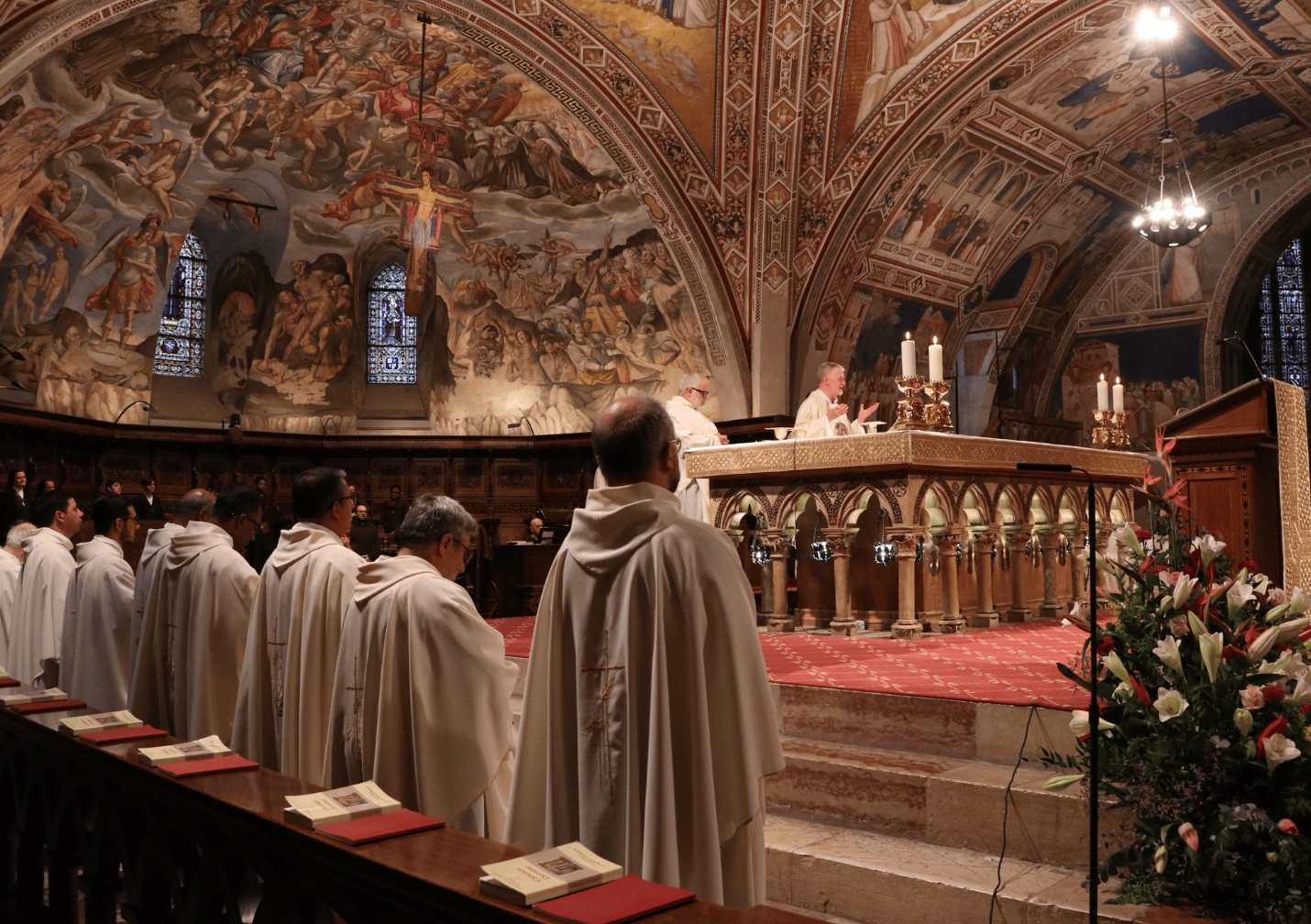 Noi ci soffermiamo qui su un momento che ha visto i Cappuccini protagonisti. Alle ore 8:00 nella Basilica inferiore di San Francesco ad Assisi, il nostro Ministro generale, fr. Roberto Genuin, ha celebrato l’Eucaristia, che ha riunito frati provenienti da diverse regioni d’Italia e del mondo che in quel momento si trovavano in pellegrinaggio sulla tomba del nostro Padre San Francesco. Hanno partecipato anche religiose di diverse Congregazioni appartenenti alla famiglia cappuccina e laici che ci accompagnano e si riuniscono nei nostri conventi. La celebrazione si è svolta in un clima di fraternità e semplicità, dove si percepiva un’atmosfera di gioia nel celebrare insieme, come una famiglia, attorno alla tomba di San Francesco e di alcuni altri frati degli albori francescani.
