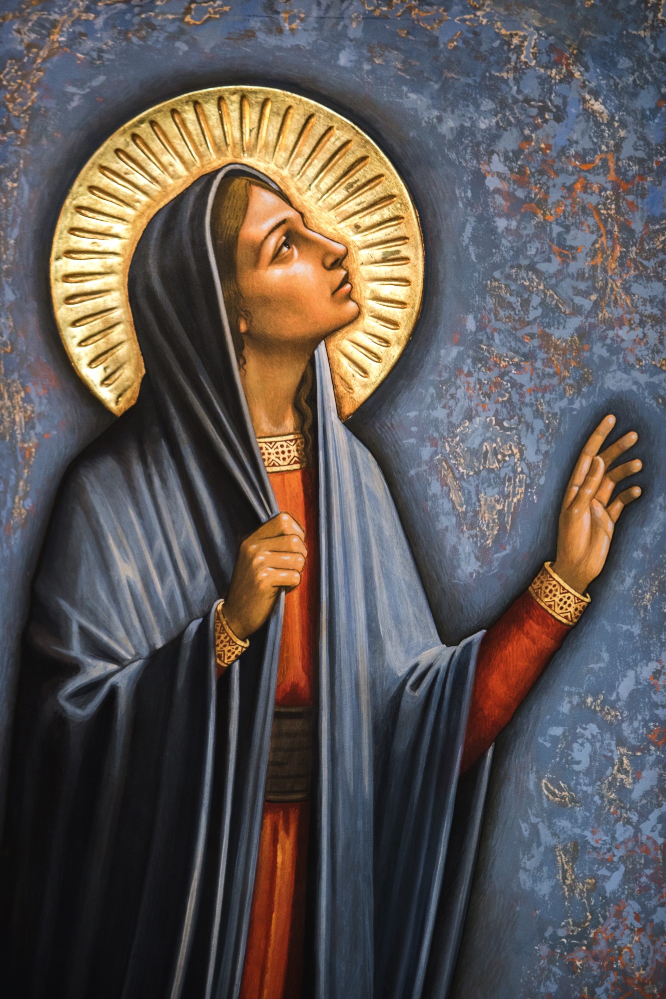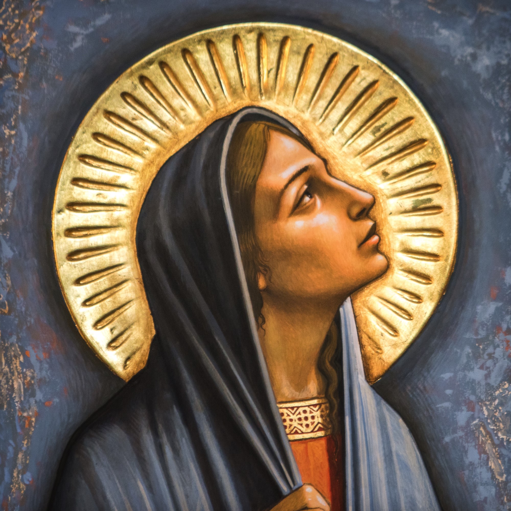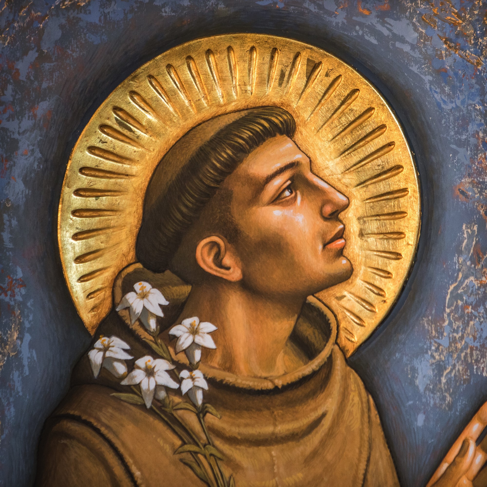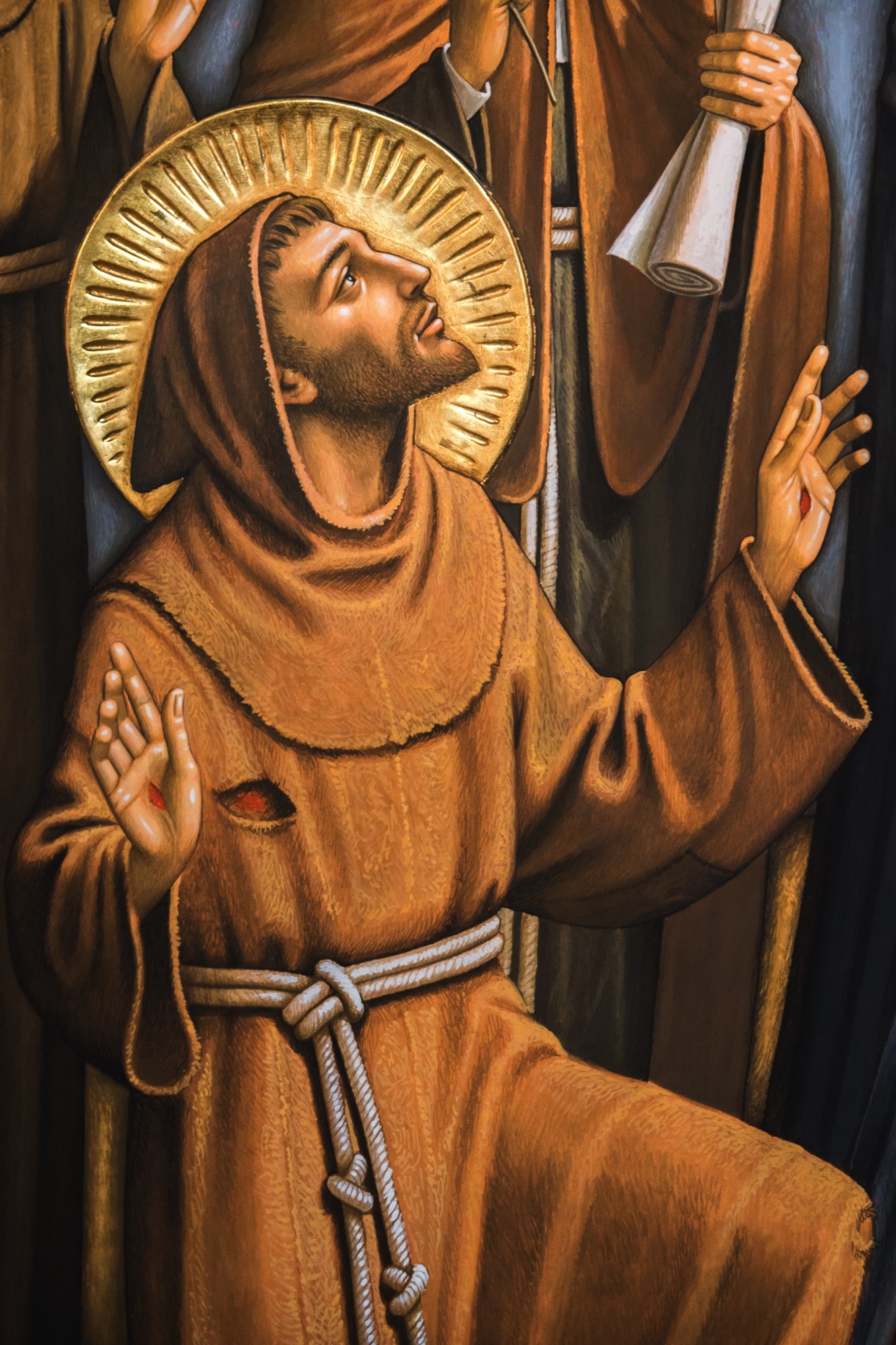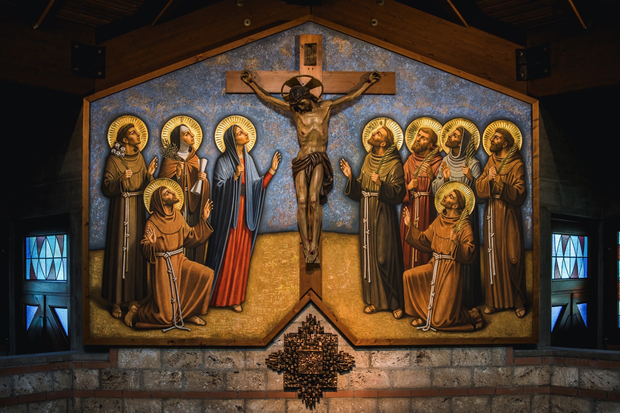 Die Fotos geben das Gemälde von Piero Casentini wieder: Maria mit den Heiligen Antonius, Klara, Franziskus und den fünf Erstlingsmärtyrern in Anbetung des Gekreuzigten (aus dem Jahr 2012); es befindet sich im Klarissenkloster der hl. Verkündigung in Terni (Italien).
