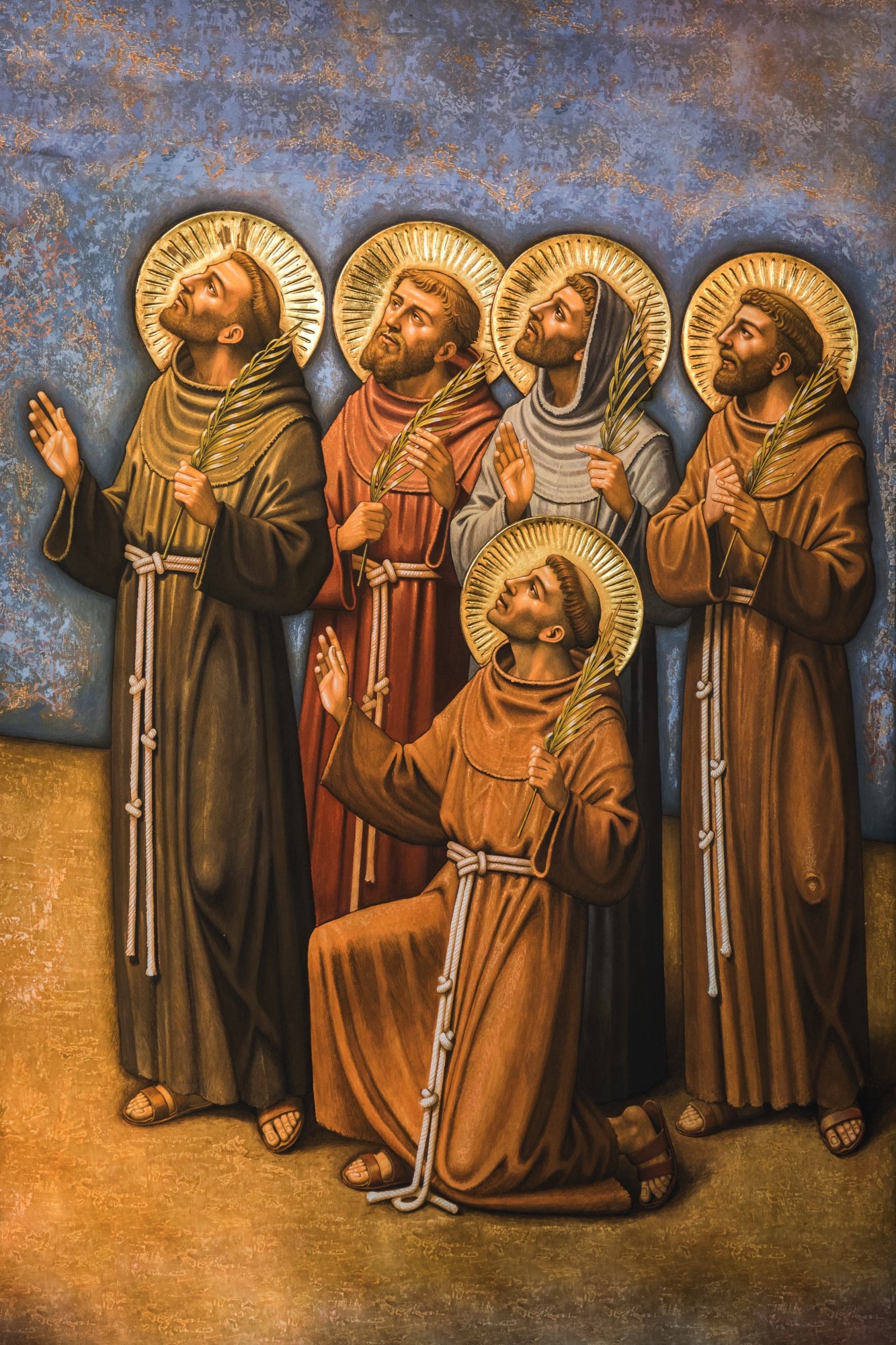 Die heiligen Berard, Otto, Petrus, Accursius und Adjut, die auch Erstlingsmärtyrer der Franziskaner genannt werden, waren die ersten Blutzeugen des franziskanischen Ordens, grausam umgebracht in Marokko am 16. Januar 1220.
