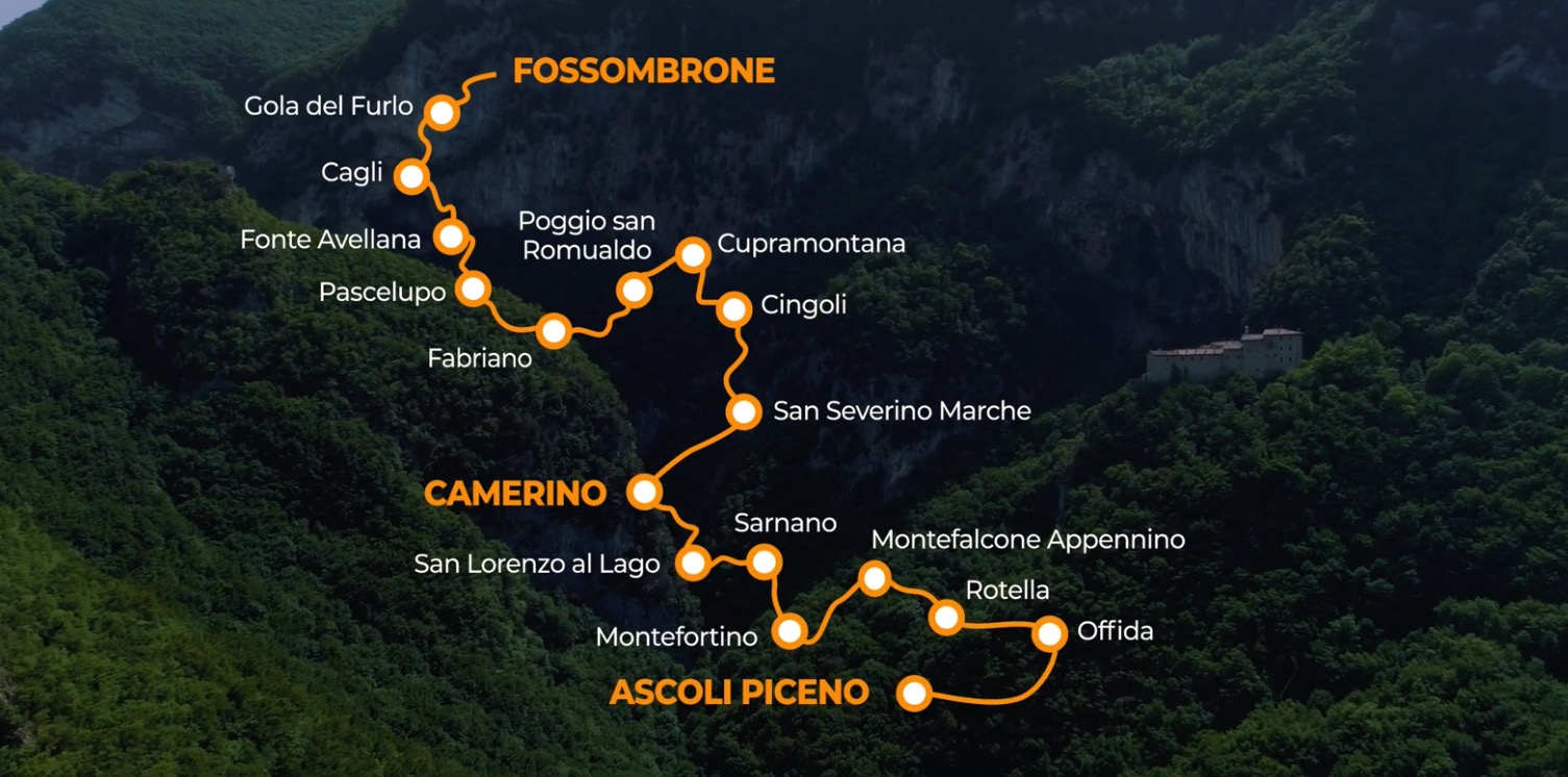 The route winds through seventeen sites. It starts at the Colle dei Santi di Fossombrone, with a midway point at the friary of Renacavata in Camerino and ends at the tomb of San Serafino da Montegranaro in Ascoli Piceno. The path is made of continuous ups and downs with an average distance between stops of 21.5 km (the shortest is 17 km, the longest is 27 km) and the difference in the topography is sometimes quite considerable, so it is not advisable to undertake the journey without sufficient previous conditioning. The journey can be completed all at once or divided into two or more parts according to time available. At every stopover, it is possible to pause at various types of accommodations that are indicated along the path: friaries or other religious houses, bed & breakfasts, farmhouses or hotels, with which agreements have been made for offering favorable prices to pilgrims; likewise, many restaurants offer “pilgrim menus” at € 15 to accommodate the need for sustenance along the way.