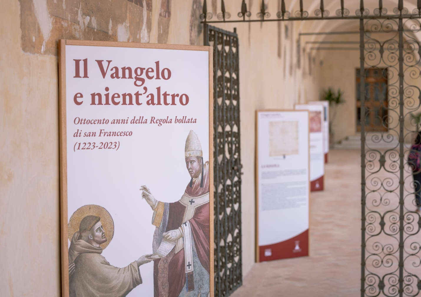 On Tuesday afternoon, May 23, 2023, the eve of the Feast of the Dedication of the Basilica of St. Francis, an exhibition opened entitled, “The Gospel and Nothing Else.” The exhibition was inaugurated on the upper floor of the Sixtus IV Cloister of the Basilica of St. Francis. More than a hundred people attended the opening, mainly Franciscan friars from the different Orders present in Assisi.