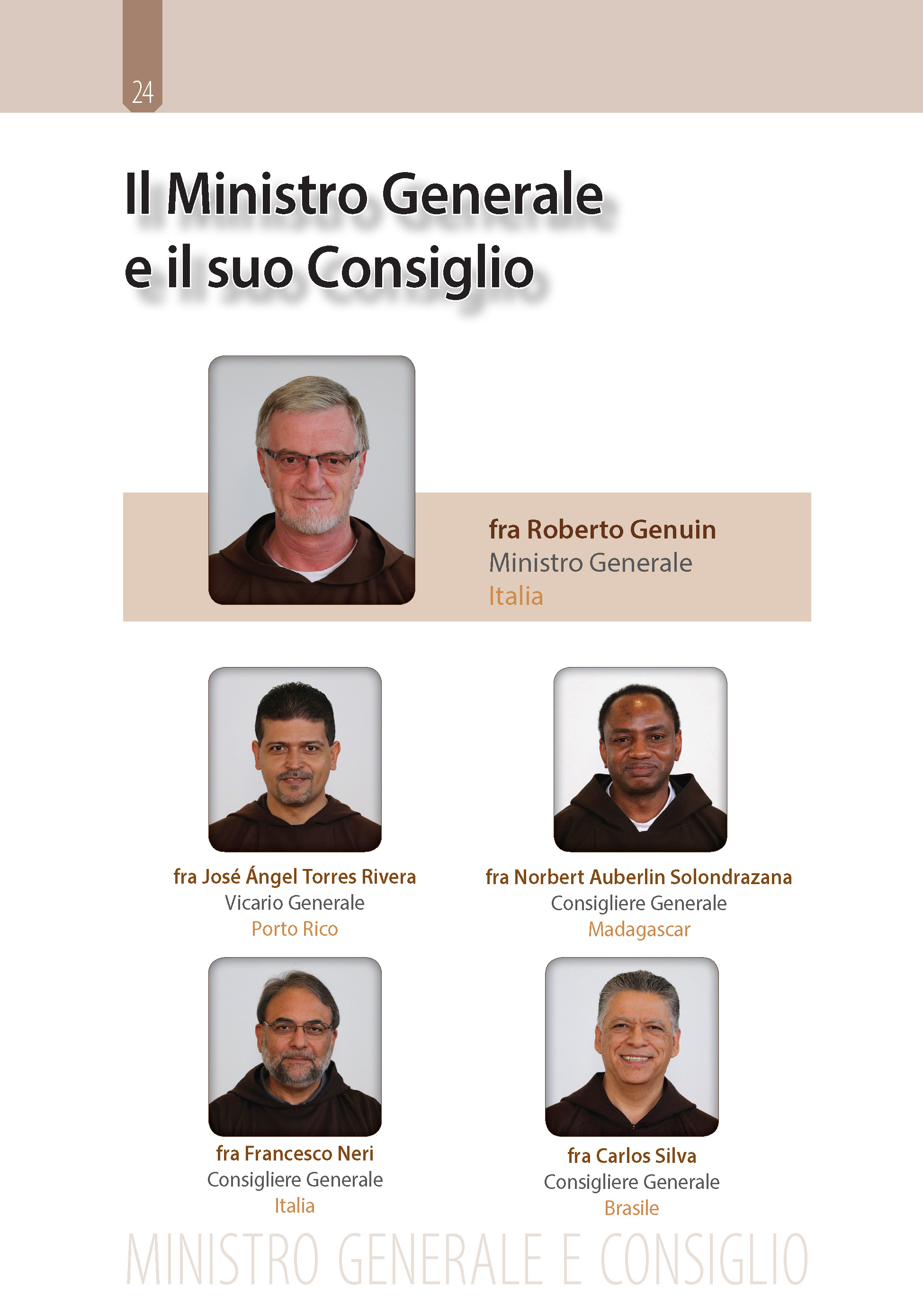 Seit Beginn meines Mandats habe ich mir vorgenommen, einem jeden von euch nahe zu sein. Auch wenn die geographischen Distanzen zwischen uns sehr gross sind. Eine Art, euch nahe zu sein, seien meine Besuche und die der Räte bei euch; allerdings sind sie recht zeitaufwändig. Eine andere Art machen die zahlreichen Büros unserer Generalkurie aus. Ich tue meine Arbeit nicht allein, als Minister leiste ich meinen Dienst mit Hilfe einer grossen Zahl von Brüdern: wir bilden gegenwärtig eine Gemeinschaft von 40 Brüdern, die aus 18 Ländern stammen.