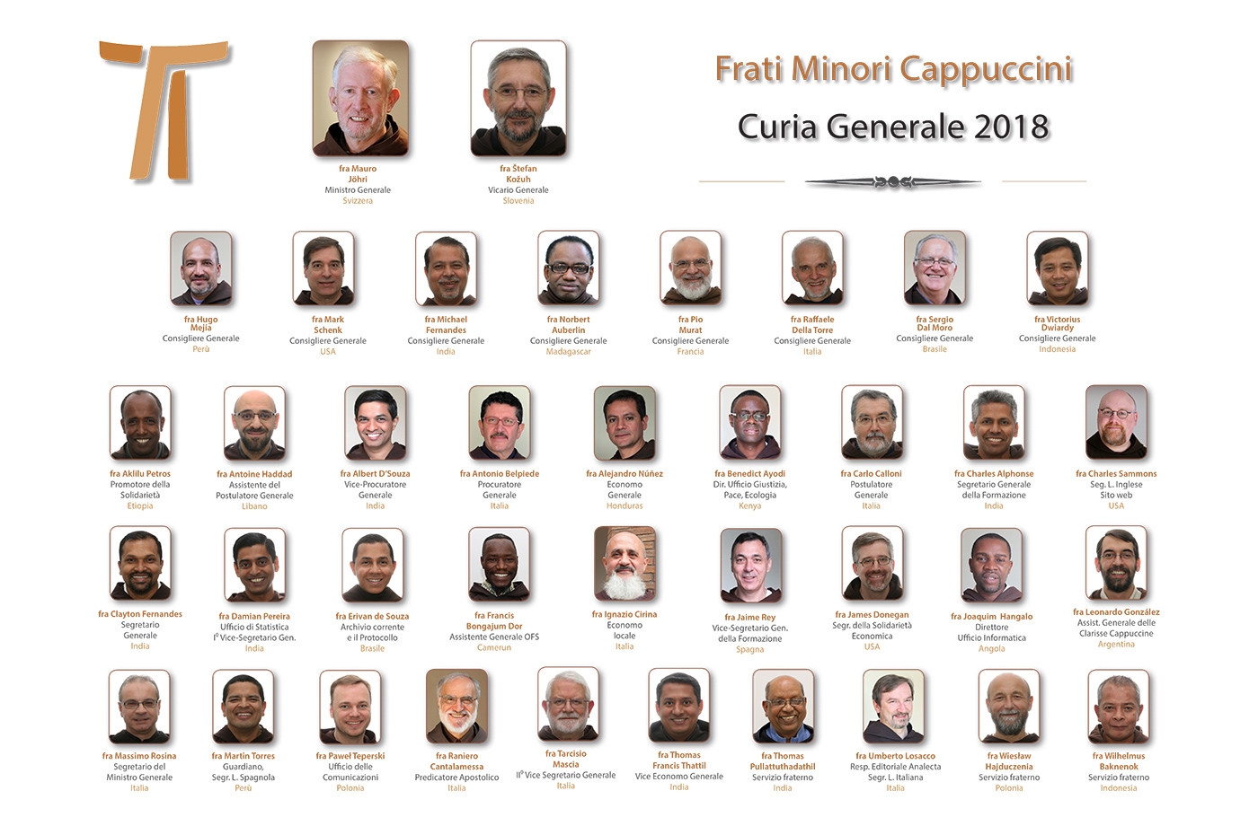 All’avvio di questo nuovo anno 2018, l’ultimo del sessennio nel quale avrà luogo il Capitolo Generale, vi presentiamo l’organigramma completo della Fraternità della Curia Generale.