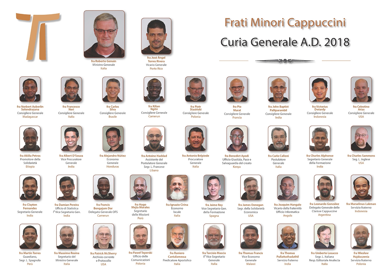 Dopo il Capitolo Generale, in seguito all’elezione del nuovo Consiglio Generale, anche la comunità della Curia Generale è cambiata. Per questo vi mandiamo due tableau: uno del governo centrale, l’altro della comunità stessa della Curia. Pace e bene!