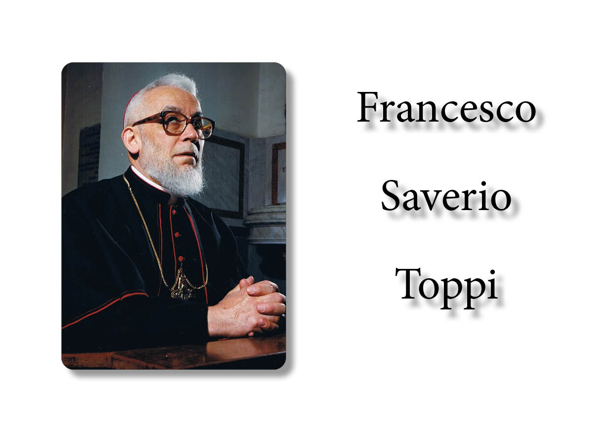 Mgr Francesco Saverio Toppi a été archevêque prélat de Pompéi et a rayonné de la joie d’être chrétien jusqu’au dernier jour de son existence. Sa personne, son sourire toujours accueillant, sa fidélité au Christ crucifié et ressuscité, son amour total et inconditionnel pour Marie, pour l’Église et pour les pauvres ont été le centre constant de sa vie humaine et de sa vocation sacerdotale. Mgr Toppi ressentit en effet le désir de se donner totalement au Seigneur Jésus-Christ dès le plus jeune âge.