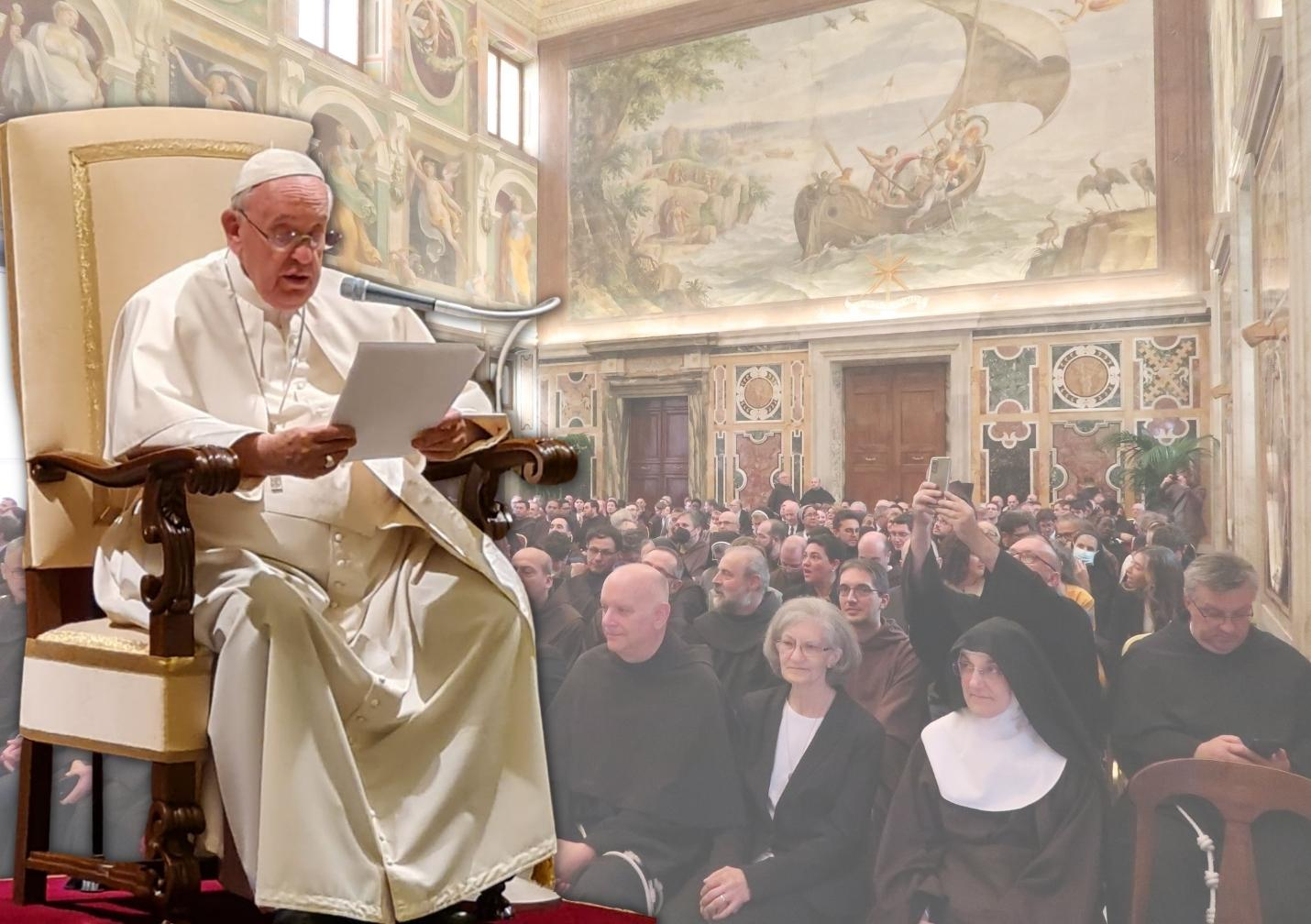 La mattina del 31 ottobre 2022, Papa Francesco ha ricevuto nell’Aula San Clementina una rappresentanza di oltre duecento membri consacrati della Famiglia Francescana, inclusi frati dei quattro Ordini Francescani, dell’Ordine Francescano Secolare, suore di diverse congregazioni francescane e autorità ecclesiali di alcuni luoghi francescani, per comunicare e riflettere sui Centenari francescani che andremo a vivere nel prossimo quadriennio.