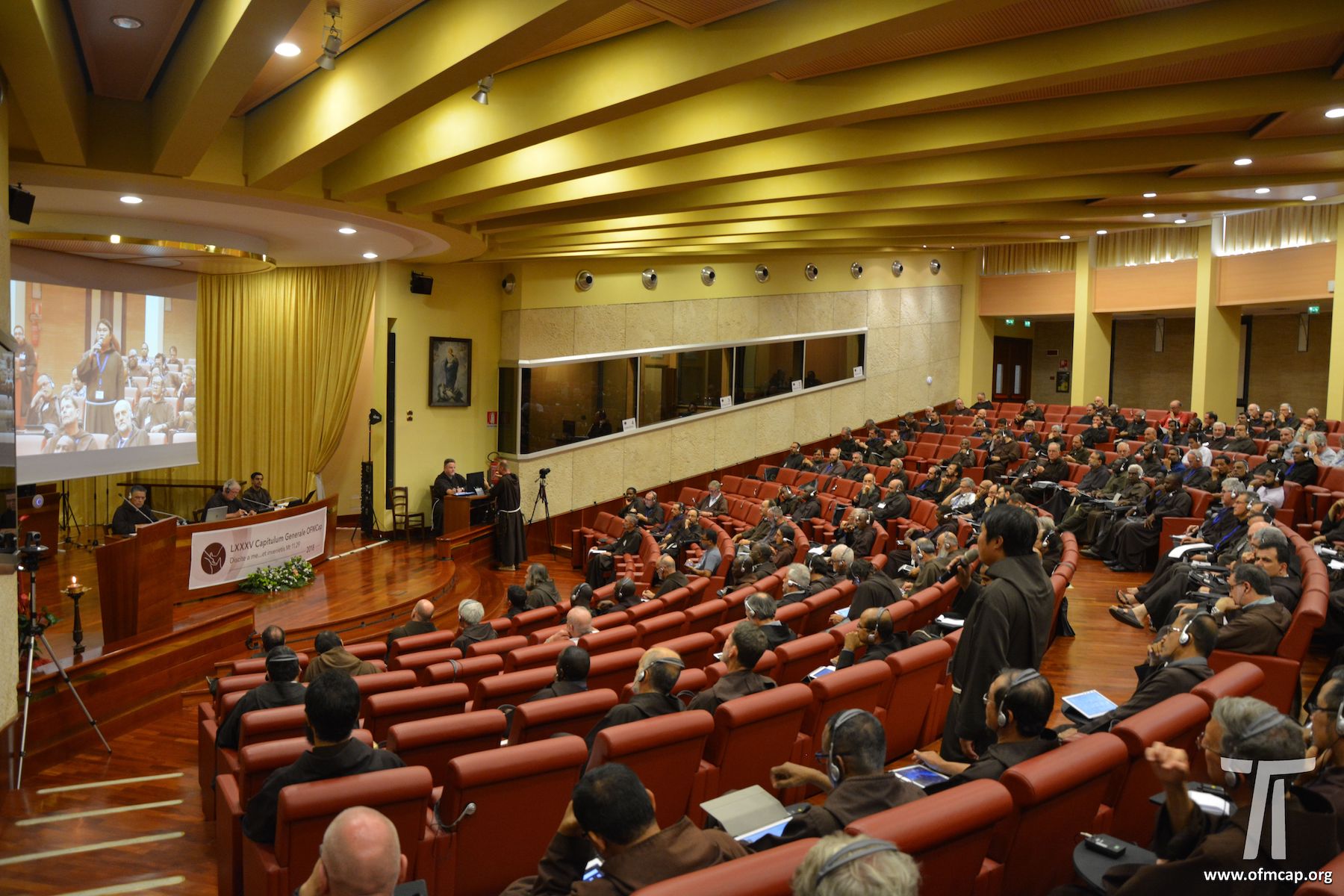 Rzym, 30 sierpnia. Kapituła generalna kapucynów, czwartego dnia swojej pracy, weszła w nową fazę. Dzisiaj program przewiduje poranną debatę nad sprawozdaniem Ministra generalnego Mauro Jöhri, a popołudniu nad sprawozdaniem ekonoma generalnego br. Alejandra Nuñesa. Interwencje są planowane zarówno w cetusach, jak i indywidualnie. Co to są cetusy? Są to grupy tworzone na Kapitule generalnej w zależności od języka lub obszaru geograficznego, do którego należą, lub na konferencje do których same okręgi się odnoszą. Cetusy te są zazwyczaj oznaczone skrótami: ASMEN, CCA, CCB, CCMSI, CECOC, CENOC, CIC, CIMPCap, CONCAM, CONCAO, EACC, NAPCC i PACC. Każdy z tych skrótów ma znaczenie i jest związany z określonym obszarem geograficznym. W związku z tym, każda z grup dokonała własnych wewnętrznych przemyśleń o przedstawionych sprawozdaniach. Następnie w Auli kapitulnej, sekretarz danego cetusu przedłożył krótkie sprawozdanie na temat tego, co zostało powiedziane w grupie. Po interwencjach cetusów, miały miejsce interwencje o charakterze osobistym, to znaczy każdy z obecnych mógł zabrać głos w sali Kapituły, aby wyrazić swoje przemyślenia, bądź sformułować ocenę przedłożonych sprawozdań.