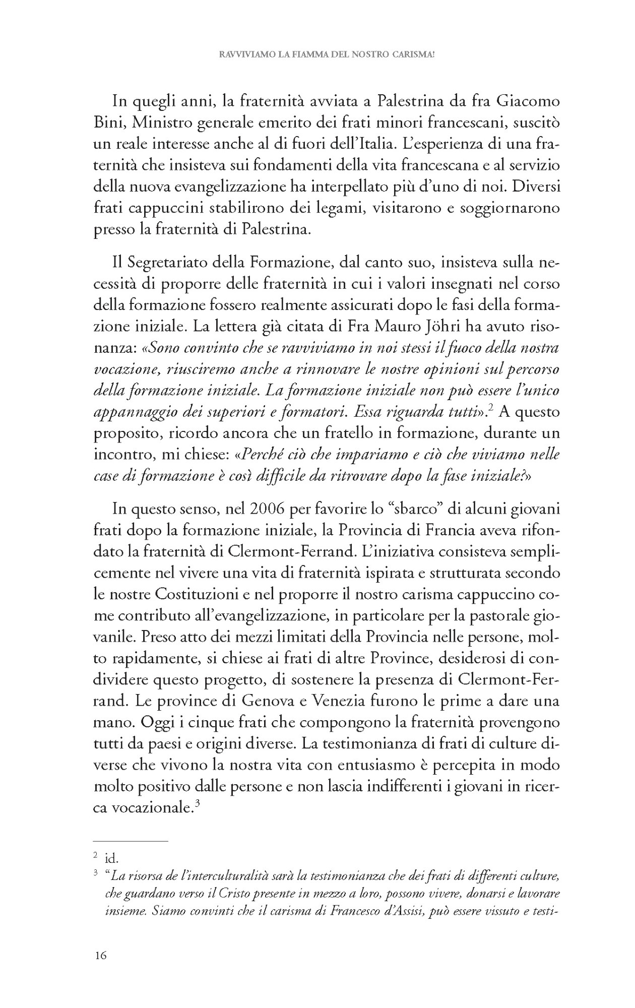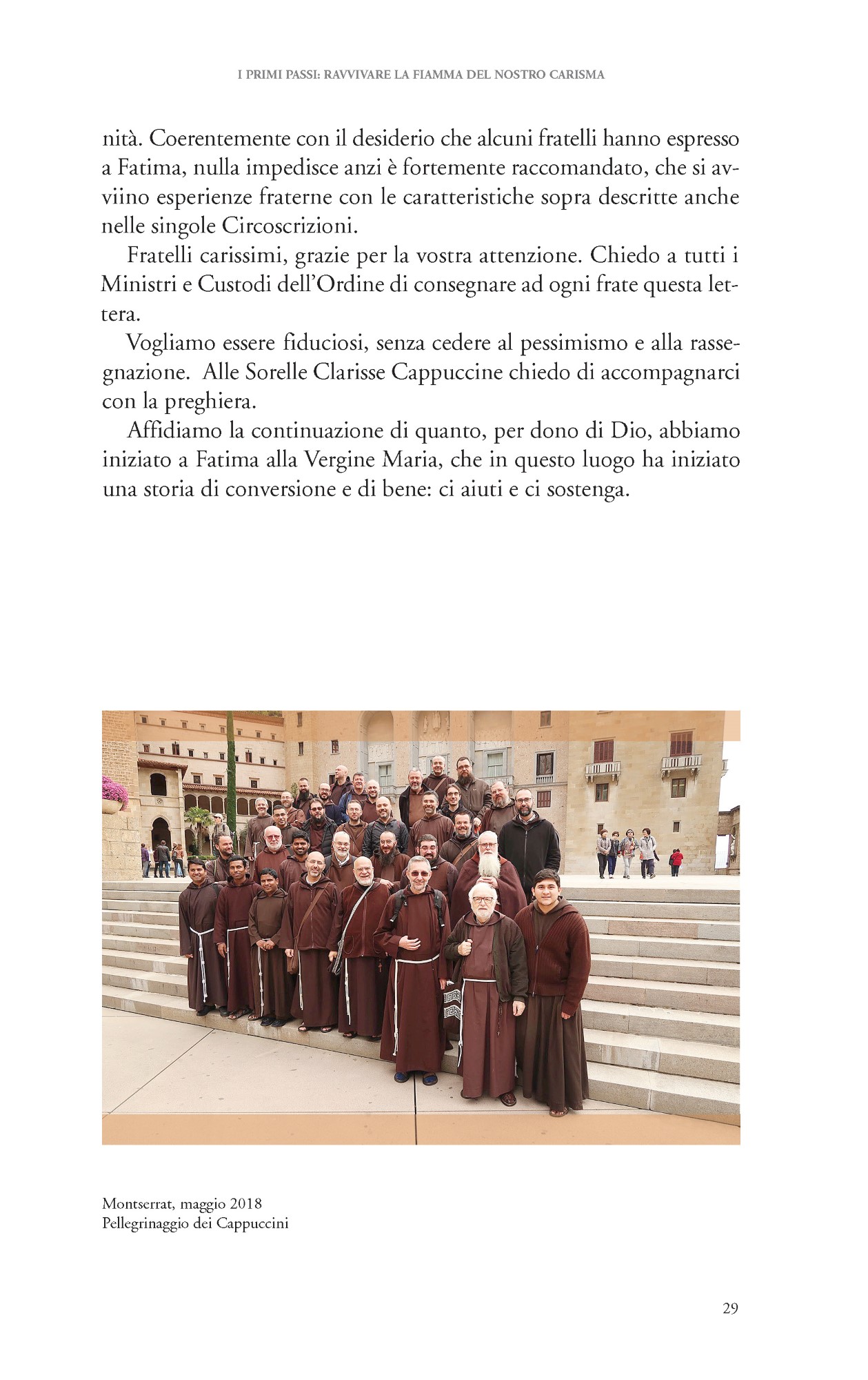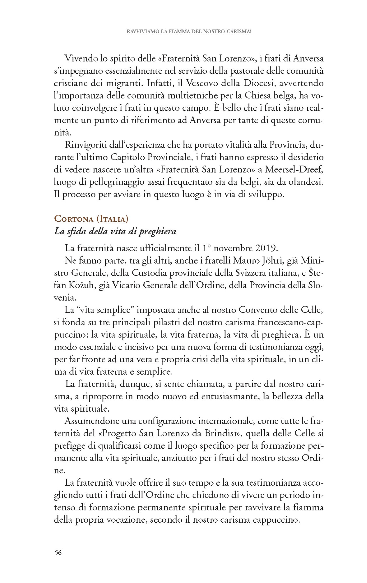 Finalement, après un an de cheminement, nous pouvons vous offrir le nouveau volume « Ravivons la flamme de notre charisme. Le projet Saint-Laurent-de-Brindes des Frères Mineurs Capucins ». Il ne s’agit pas simplement d’un ouvrage historique, mais d’un texte qui veut raconter une histoire pour continuer à l’écrire ensemble. Le « Projet Saint-Laurent-de-Brindes », en effet, bien qu’il représente une certaine nouveauté, n’a pas de valeur pour lui-même, mais est une réalité qui doit être tournée vers et stimuler toutes nos fraternités à « vivre selon la forme du saint Evangile », à la lumière de nos Constitutions.