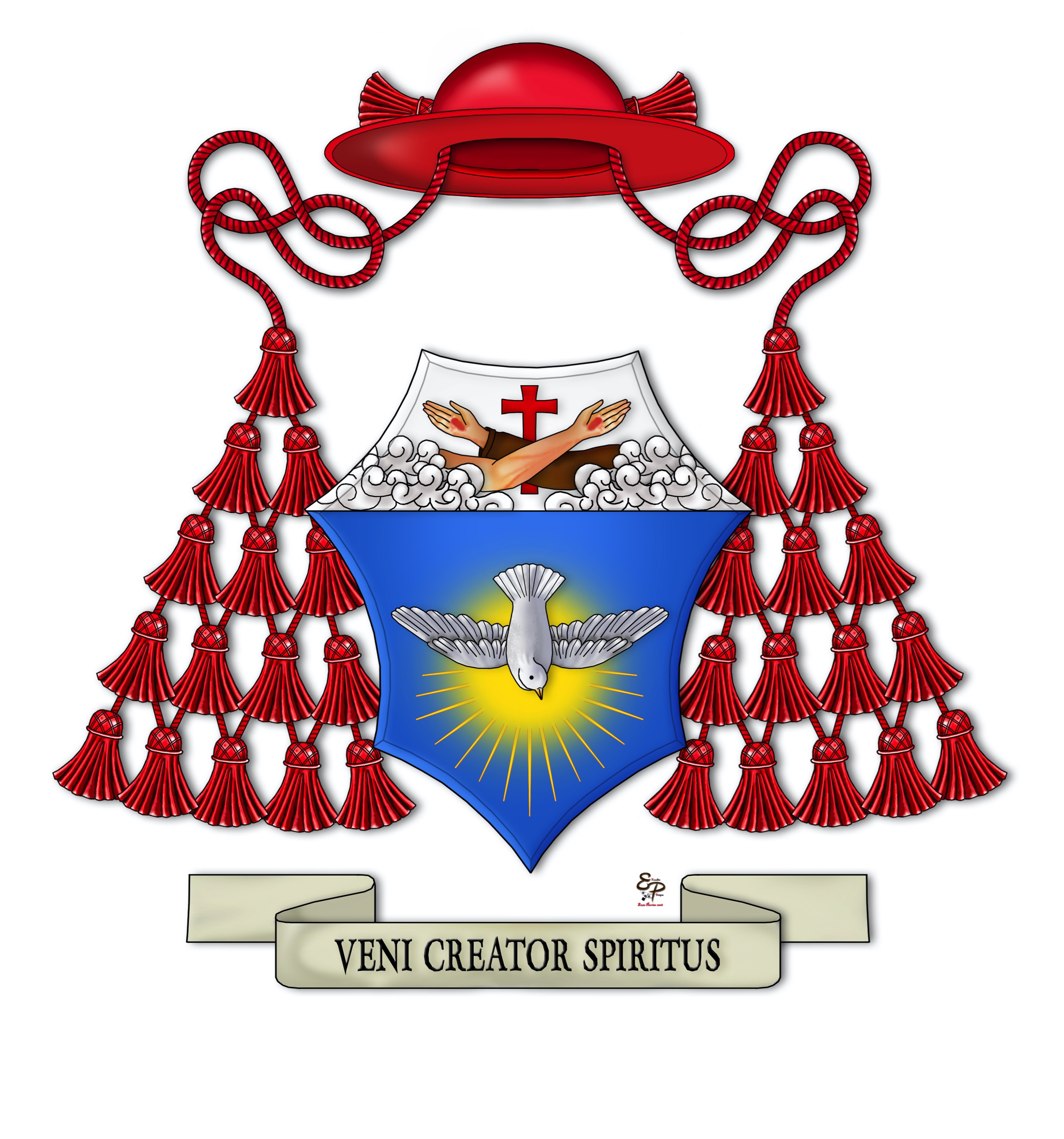 Gli eminentissimi e reverendissimi signori cardinali di Santa Romana Chiesa timbrano lo scudo, accollato ad una croce astile patriarcale d’oro, trifogliata, posta in palo, con il cappello, cordoni e nappe di rosso. I fiocchi in numero di trenta sono disposti quindici per parte, in cinque ordini di 1, 2, 3, 4, 5.