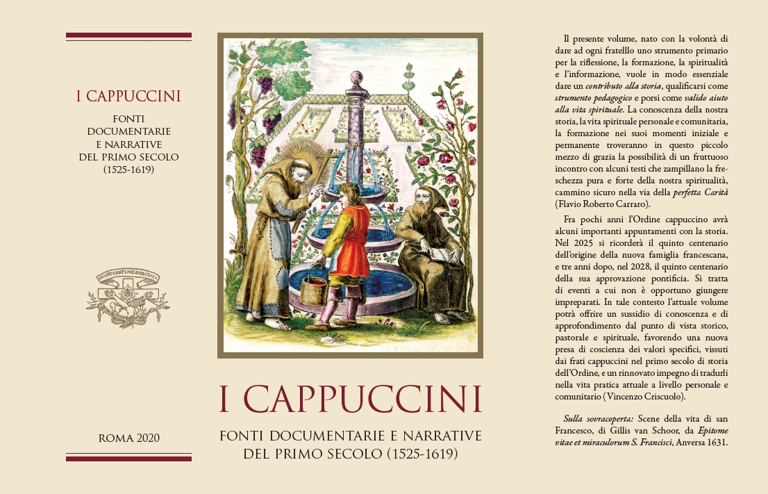 This volume, whose first edition – published in 1994 – is long since sold out, was happily defined by the General Minister Emeritus Flavio Roberto Carraro as “a small means of grace”. It can contribute appropriately to the preparation of these events. Following numerous requests, it was deemed necessary to prepare this second edition, which basically follows the same content as the first, eliminating, of course, inaccuracies and typos and respecting the same elegant and manageable graphic design. Thus, it is intended to bring to common knowledge the documentary and narrative sources of the history of the Capuchin Order in the first century of its existence, bringing out its particular spirituality and the charisma of absolute fidelity to the Franciscan ideal, which is embodied in the various evolutionary paths of history, of the Church, of the world and in diversified geographical areas.