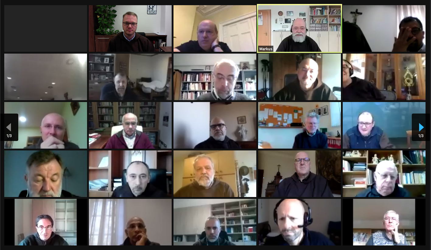 Rome. On the morning of December 14, fifty-eight Capuchin friars connected for an online videoconference via ZOOM, convened by the General Minister of the Order. In this meeting of all the provincials, custodes and delegates of Europe, Br. Roberto Genuin once again demonstrated how things are moving along in Europe. For his reflection, he used as a starting point his own letter of November 22nd to the friars of Europe. In Europe, circumscriptions and conferences are being redefined. The initiative for European fraternities (St. Lawrence of Brindisi Project) is to be further developed and promoted. And it is important for the General Curia’s administration to focus more and more on the stages of formation (postulancy, novitiate and post-novitiate) as well as on the places of study and formation in Europe. The meeting lasted about an hour and a half. Simultaneous translations were available in five languages. The General Councilors also participated, connecting from all the continents of the world, in the places where they were currently visiting the friars. After the Minister’s conference came the time for questions and dialogue. Although there were some technical difficulties, this was the sole opportunity for interaction with one other.