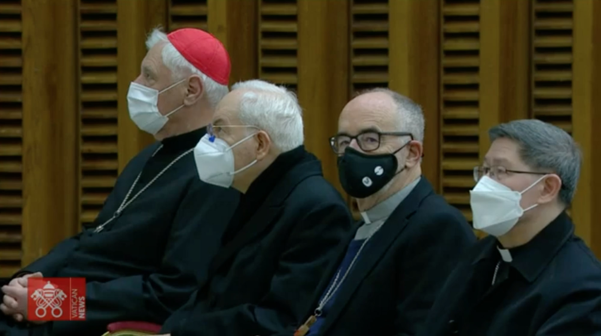 With the Holy Father present, the meditations began at 9:00 am for the three Fridays of Advent (i.e., December 3, 10 and 17). The Cardinals, Archbishops, Bishops, and Prelates of the Pontifical Household were invited to participate.