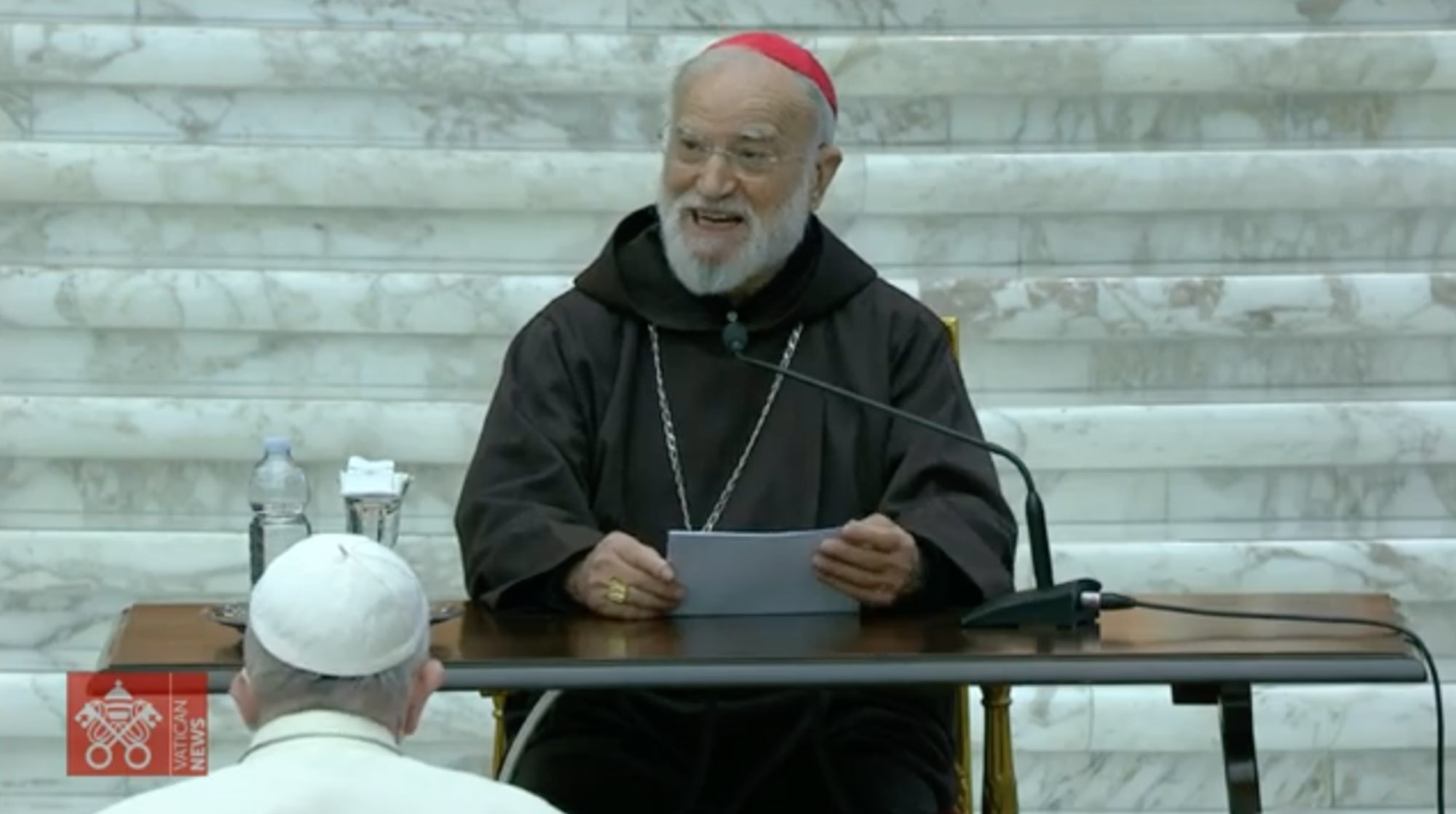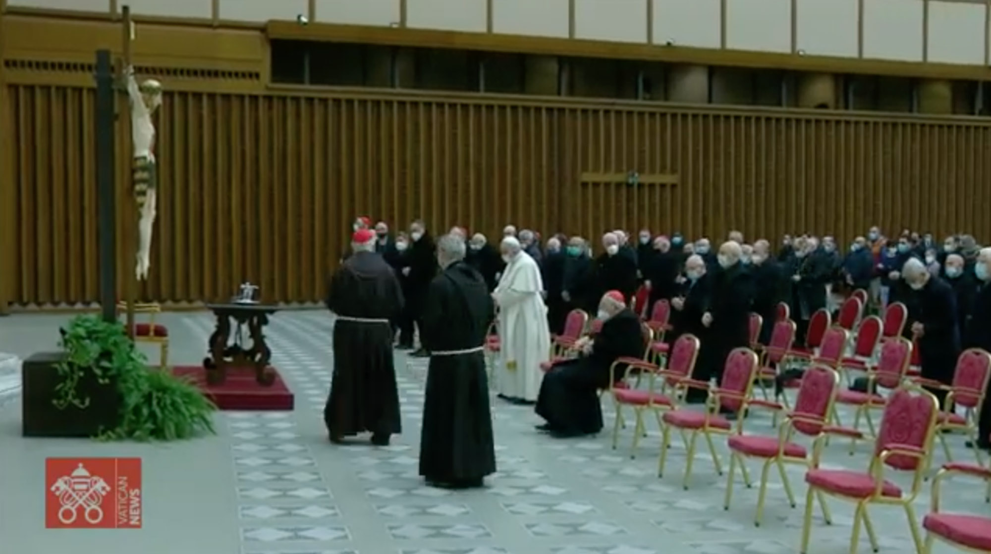 Vatican City. Br. Raniero Cardinal Cantalamessa, Preacher of the Papal Household for 41 years, during Advent once again offered meditations for the Holy Father and the Papal Household; for health reasons, to guarantee distancing due to the pandemic, he ‘broke open’ the Word in the Vatican’s Paul VI Hall rather than in the Redemptoris Mater Chapel as was usually the case.