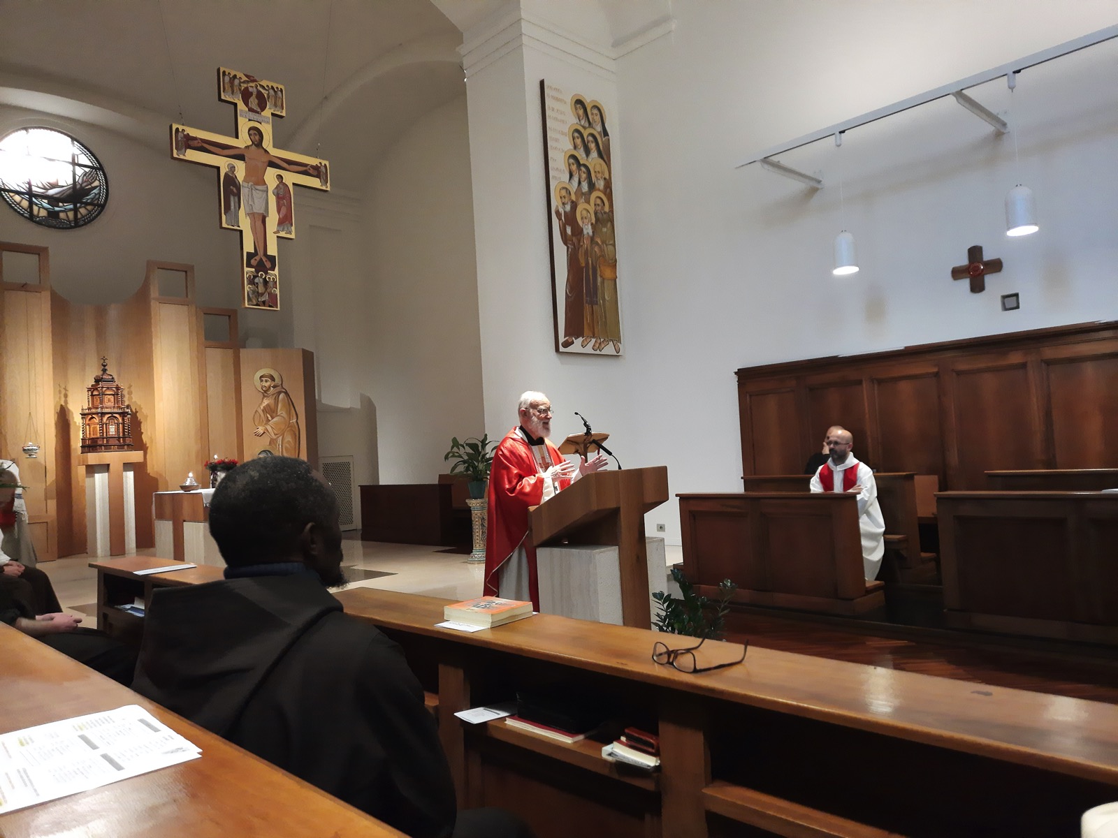 Os religiosos da fraternidade viveram em oração o dia de retiro: fizeram-no não de modo virtual, mas real, na capela da Cúria, onde, ao meio-dia, participaram da Eucaristia, presidida por Fr. Raniero Cantalamessa, Pregador da Casa Pontifícia e há alguns dias criado cardeal pelo Papa Francisco.